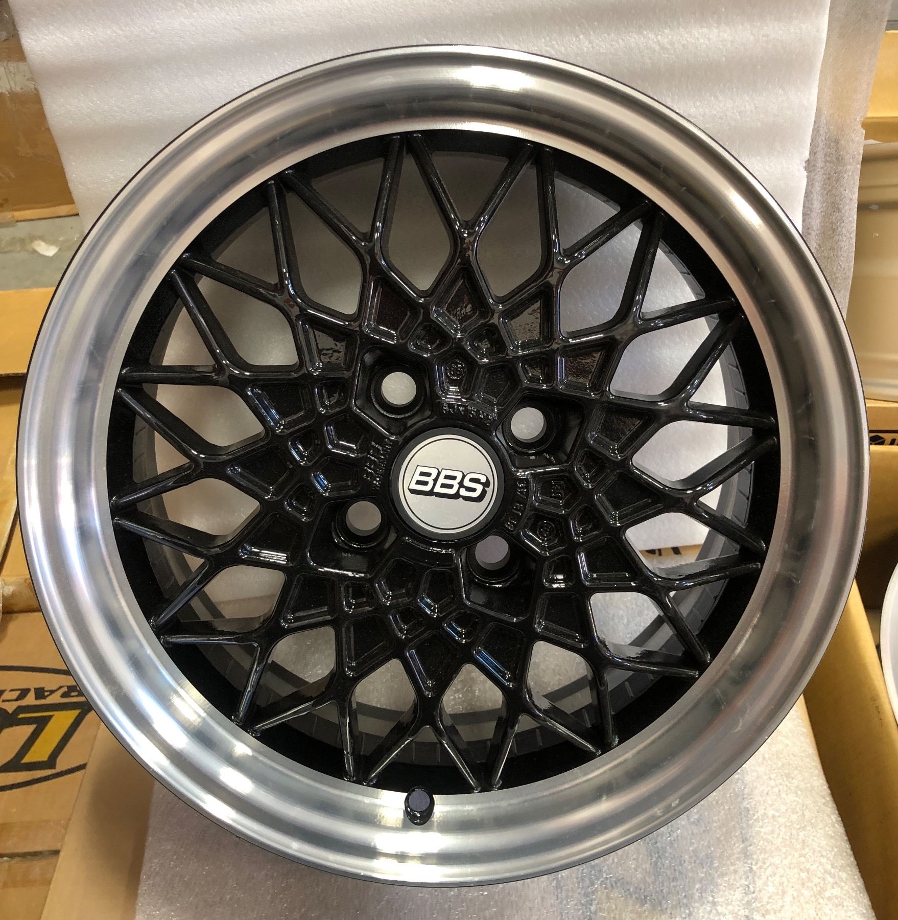 Set of 2 BBS wheels - sz 6x15" (model 6015 P2) black color w/ silver trim (Made in Germany)