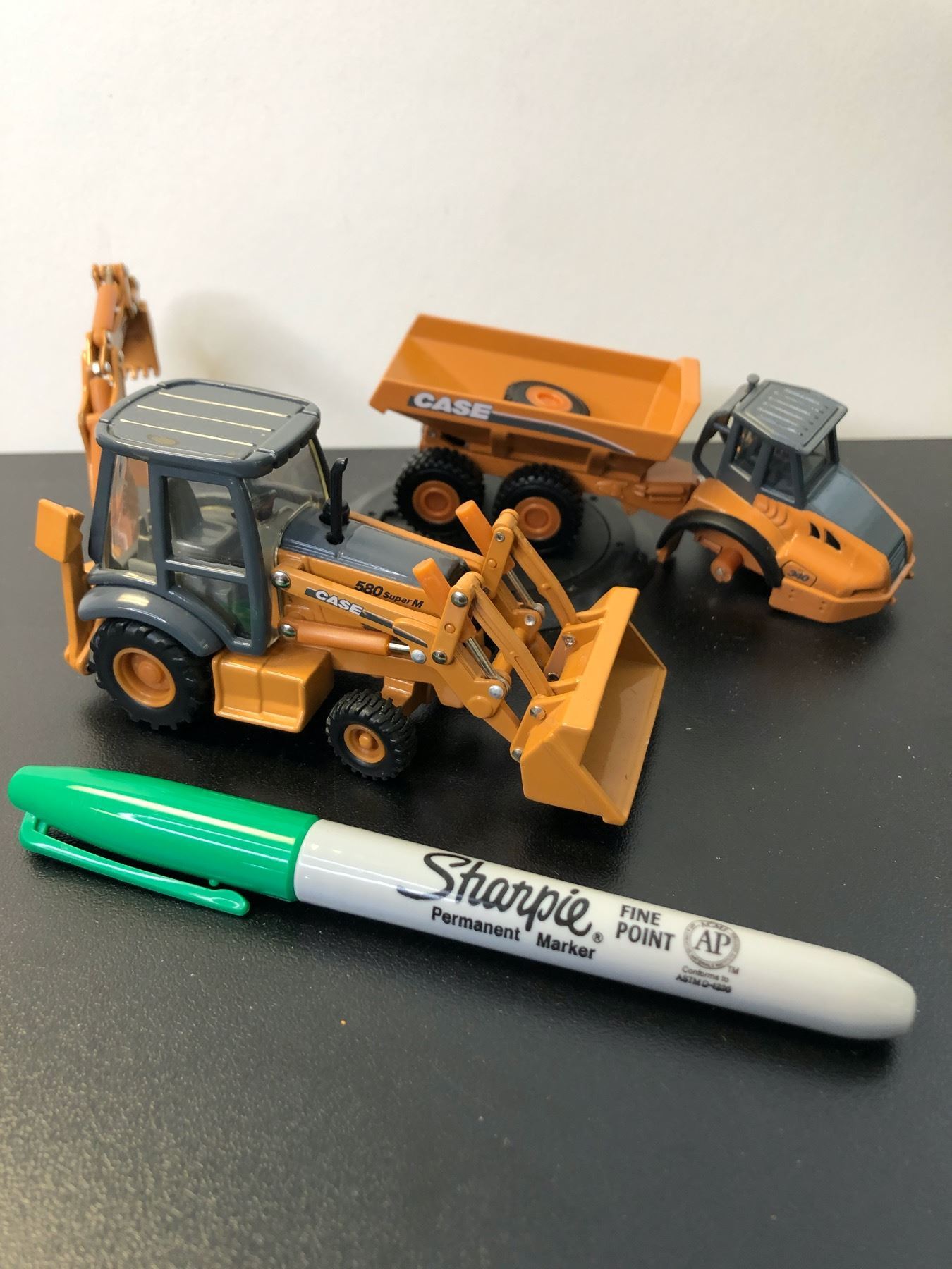 Set of 2 Case heavy metal die-cast scaled models - includes 580 Super M Loader Backhoe & 340 Dump Truck (one wheel broken)