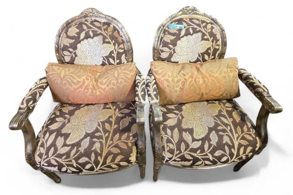 Set of 2 Modern Victorian Style Floral Armchairs, approx. H36" x W24" x D22"