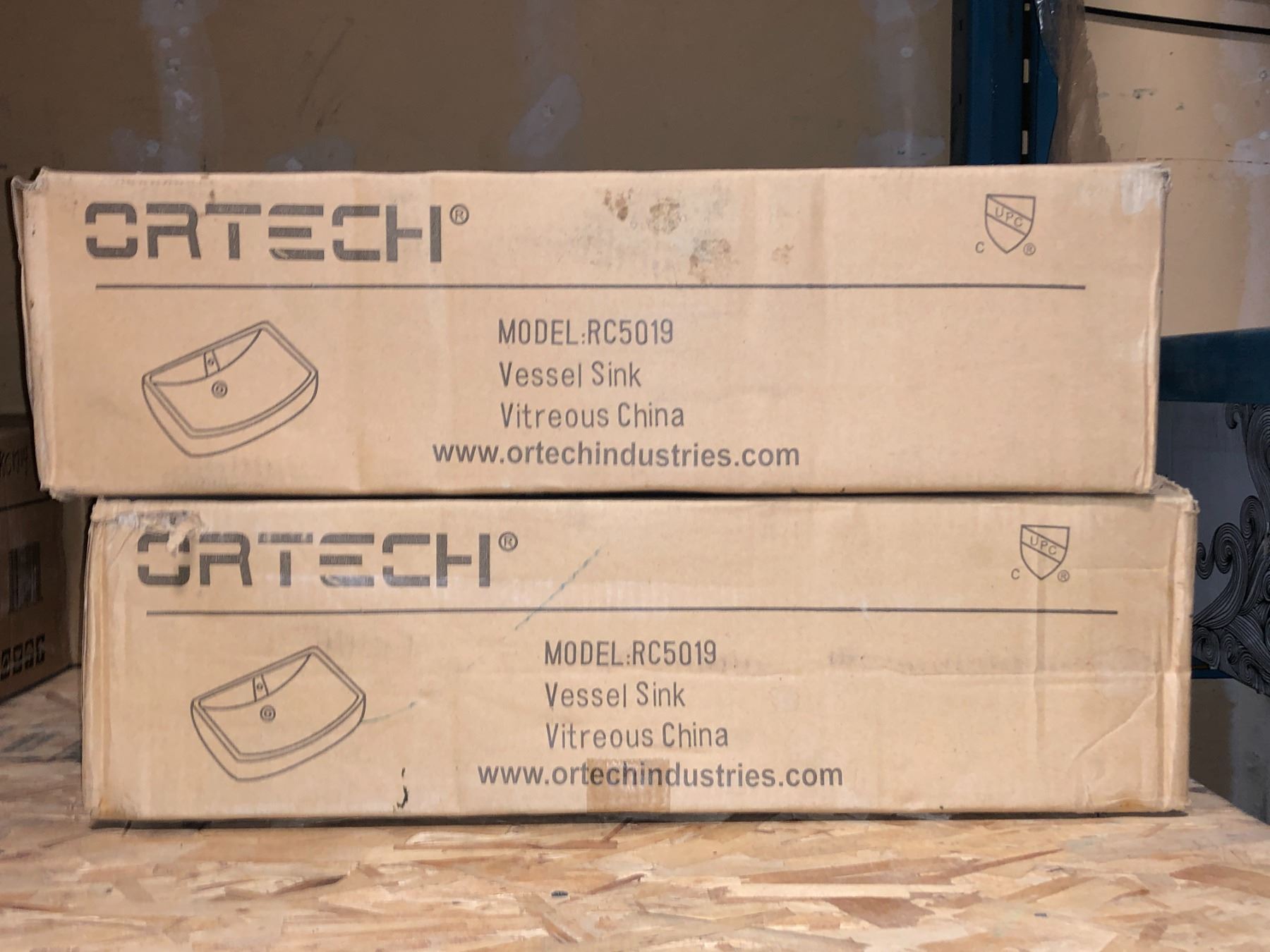 Set of 2 NEW Ortech vessel sinks (in boxes)