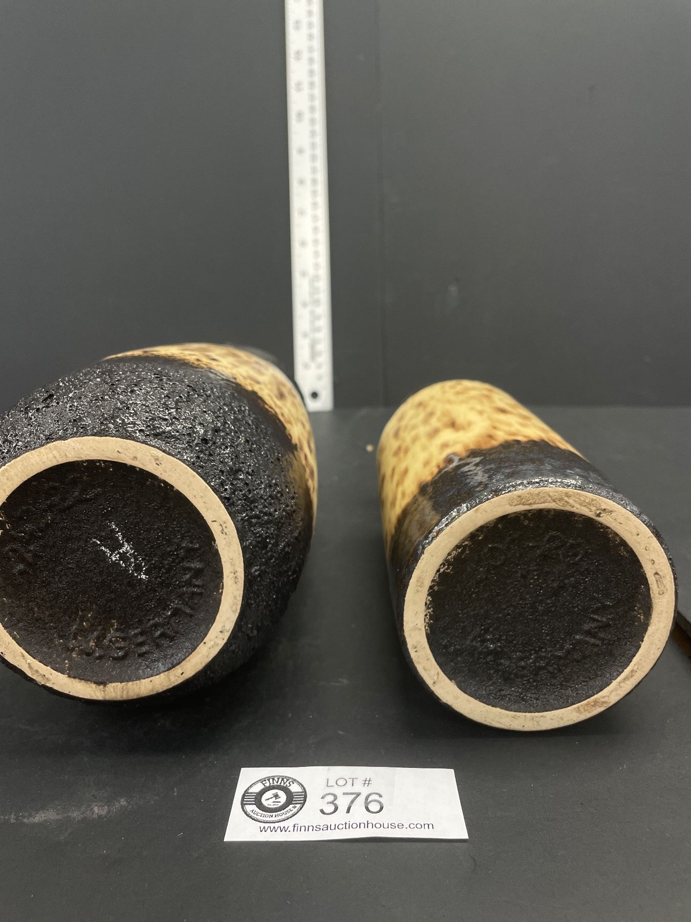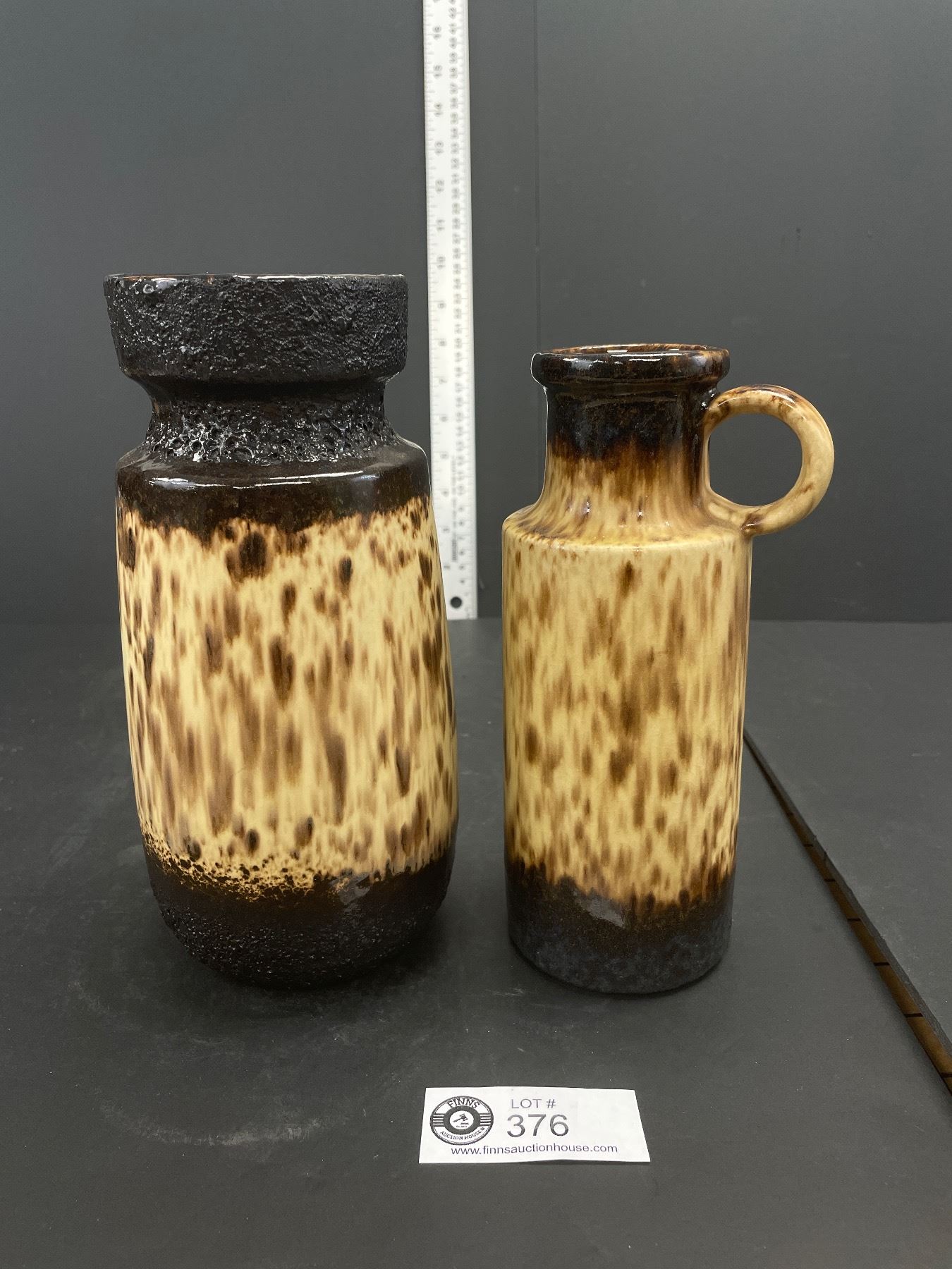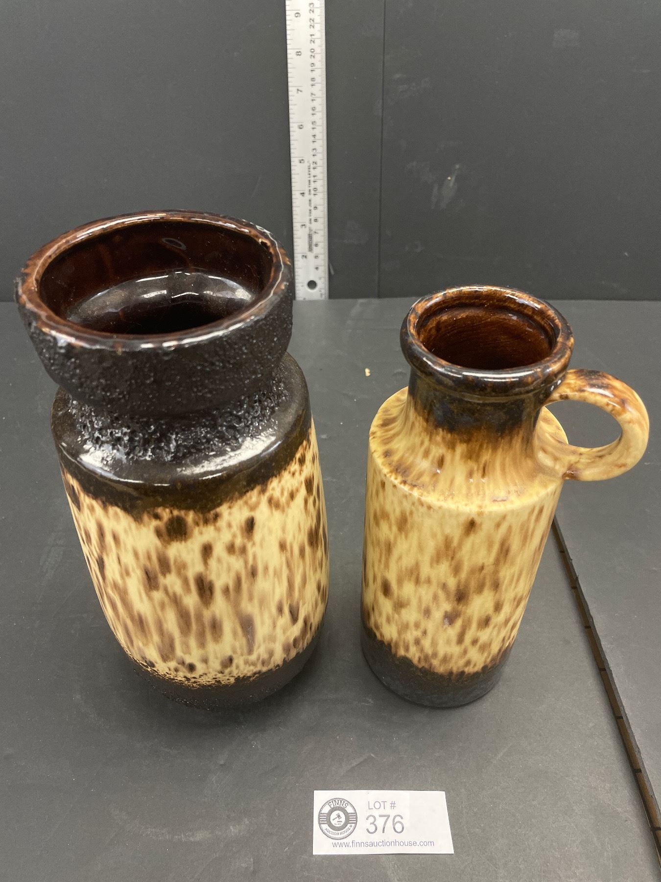 Set of 2, One With Handle, Numbered West German Vases Tallest 9" Tall
