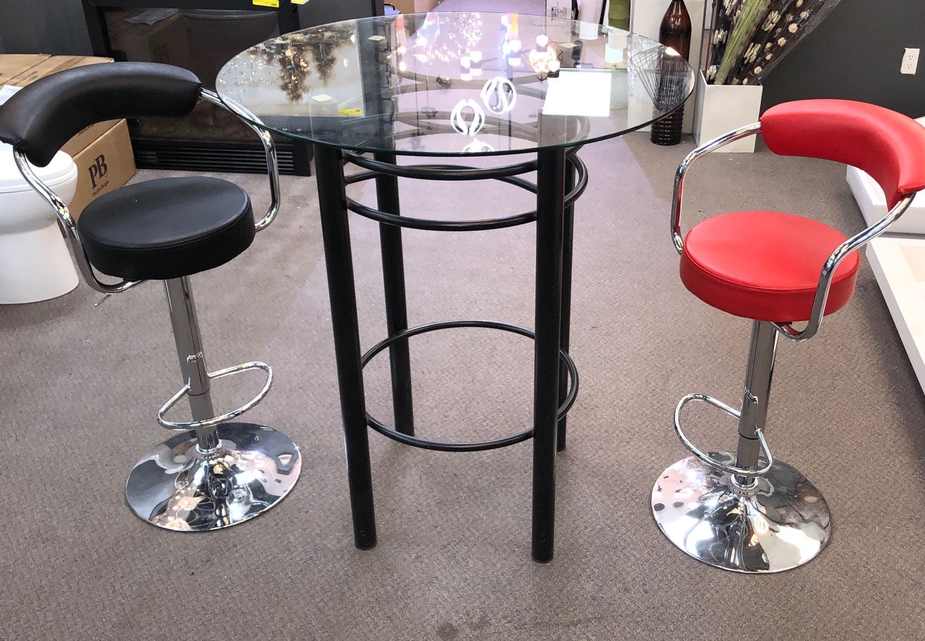 Set of 2 counter stools w/round counter table - (approx 3ft D 42in H)