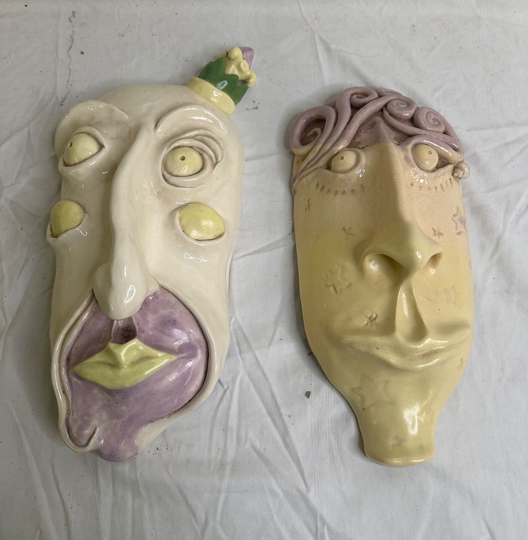 Set of 2 decorative wall masks - includes King of Fools & Queen Estrella wall masks signed by artist