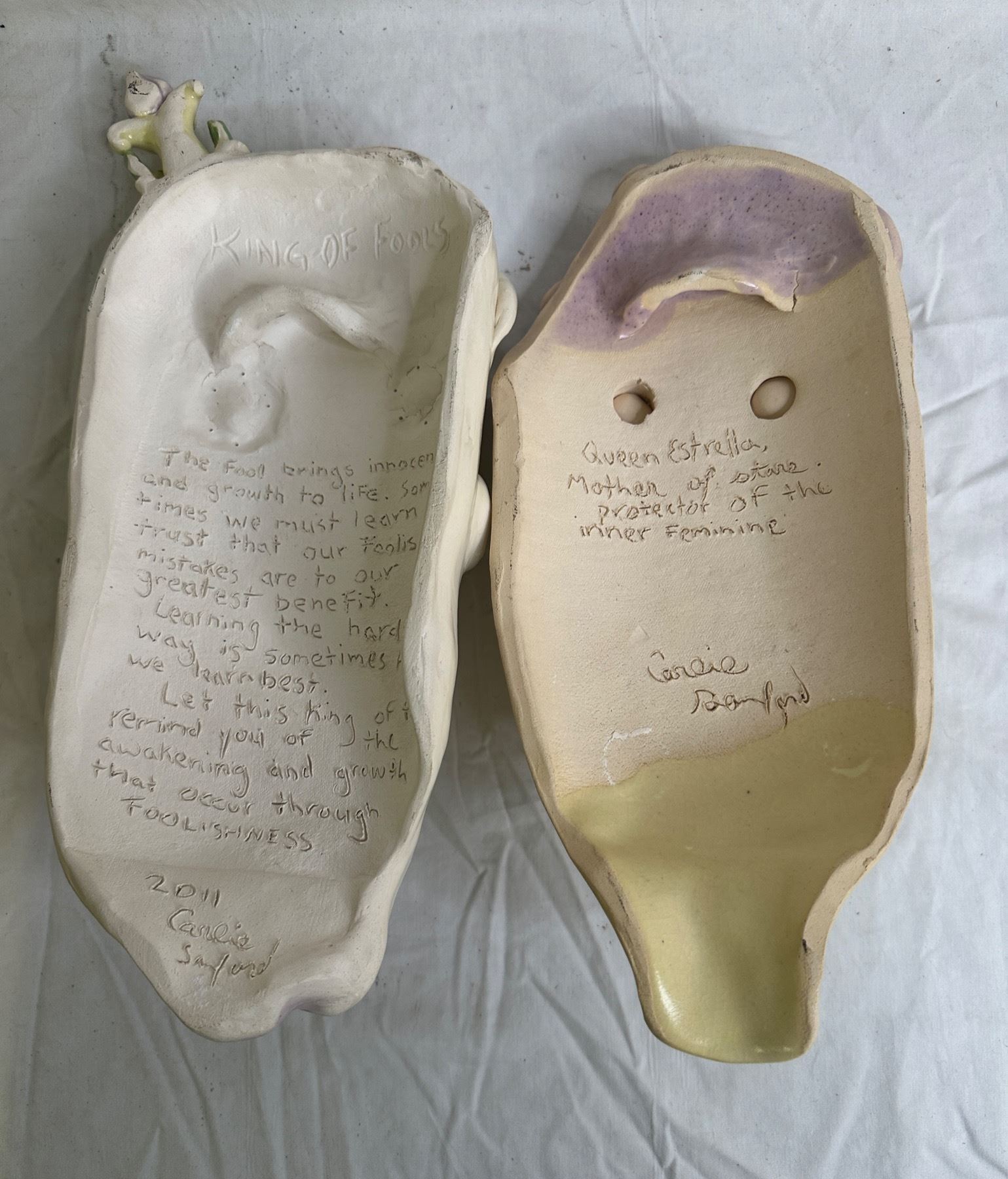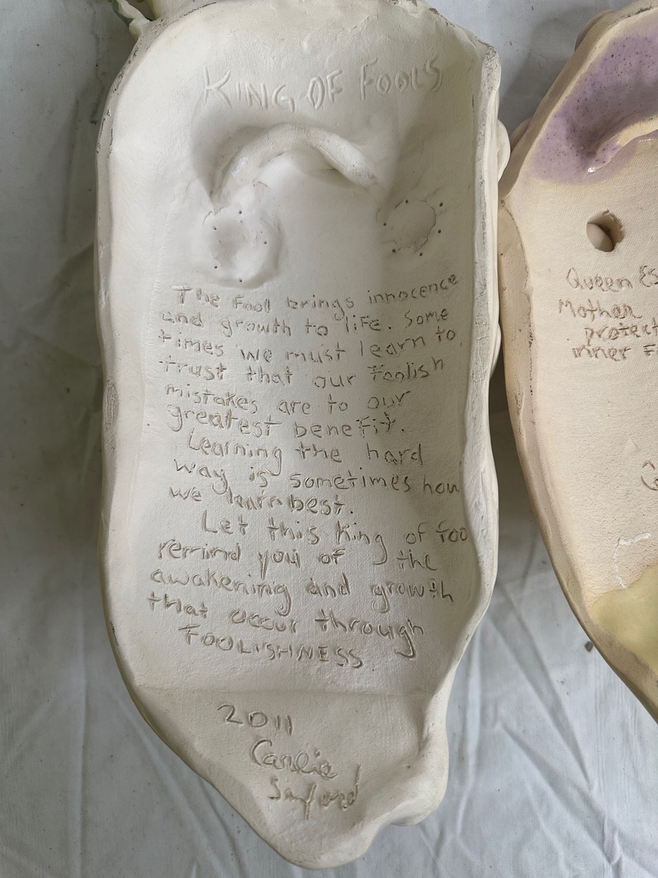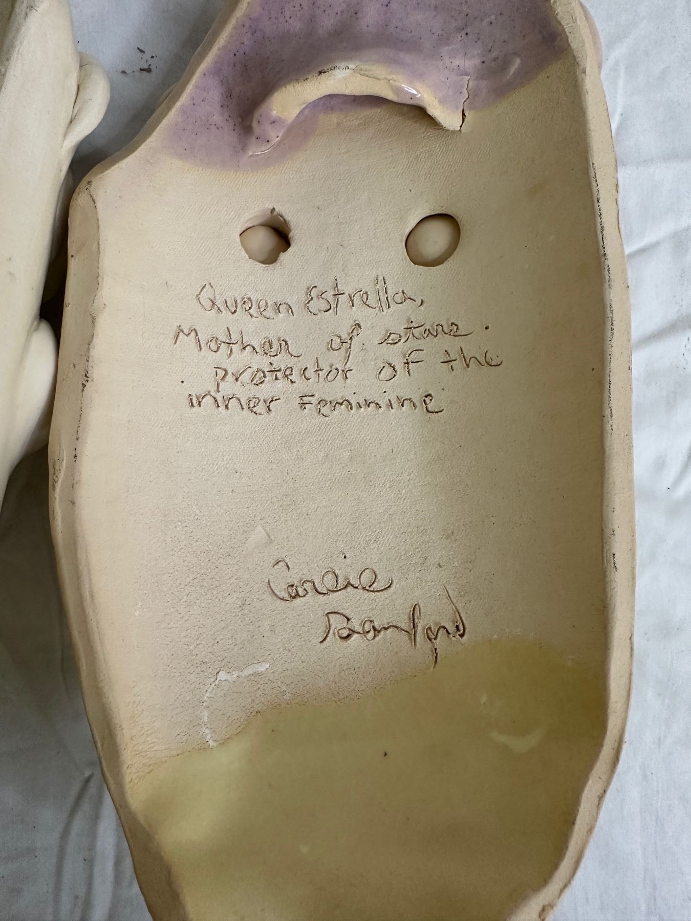 Set of 2 decorative wall masks - includes King of Fools & Queen Estrella wall masks signed by artist Carlie Sanford