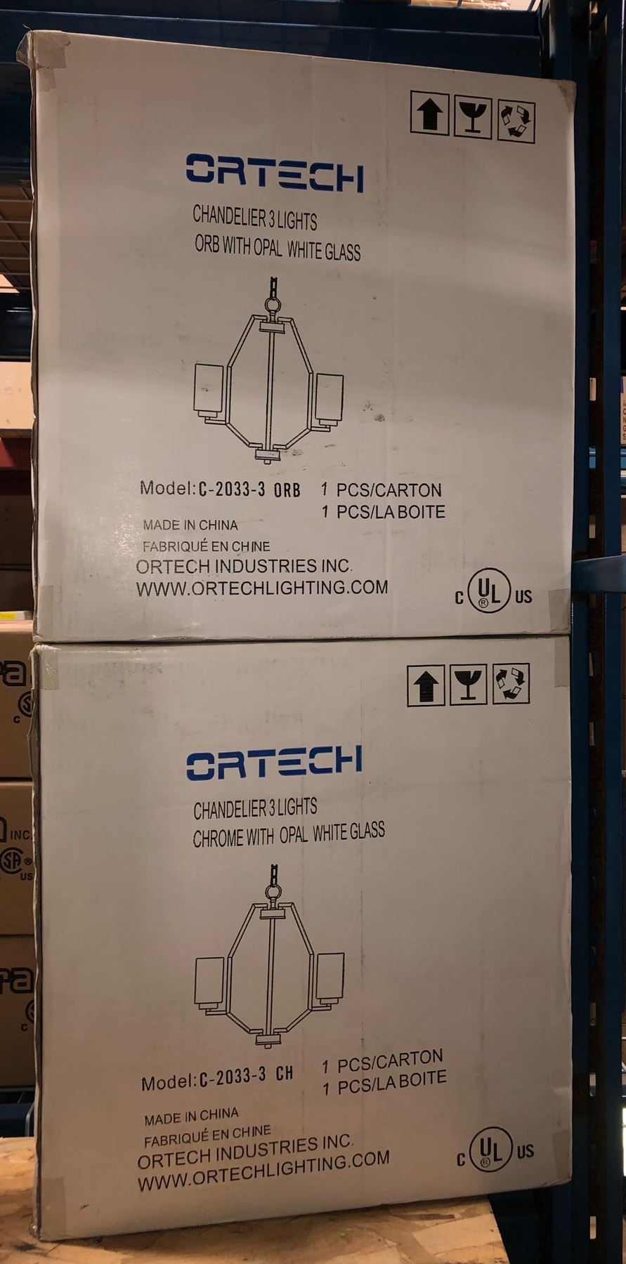 Set of 2 new Ortech chandeliers w/ 3 lights
