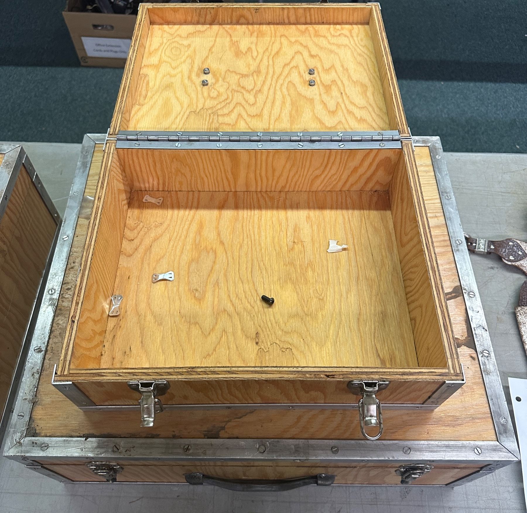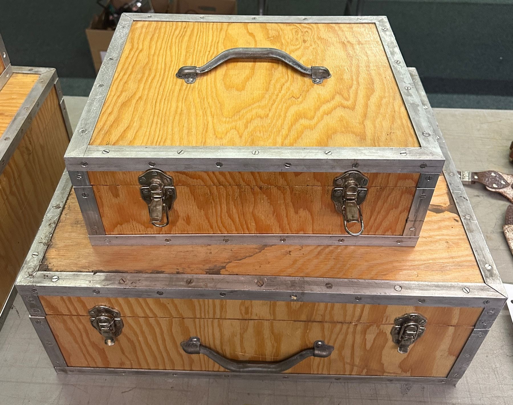 Set of 2 wooden cases - approx. 15in wide x 12in depth x 6in height & 21in wide x 18in depth x 8in height