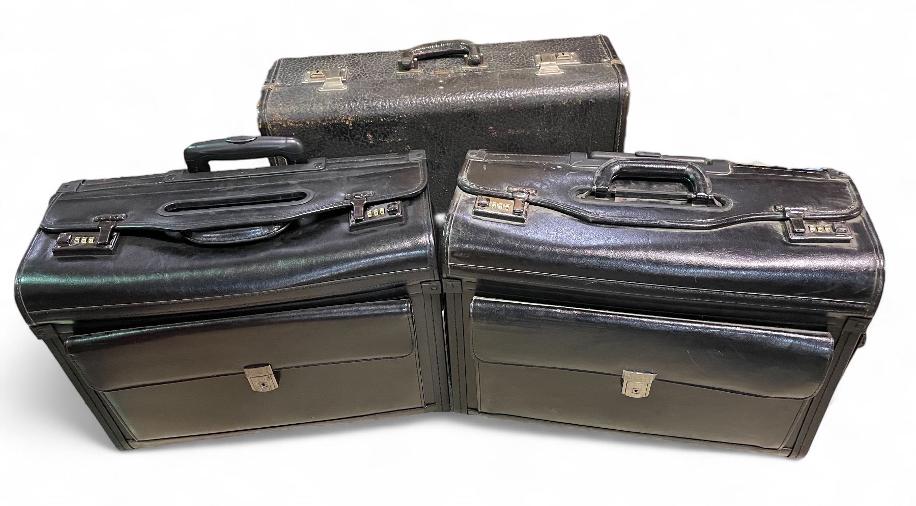 Set of 3 Lawyer-Style Black Locking Wheeled Briefcases