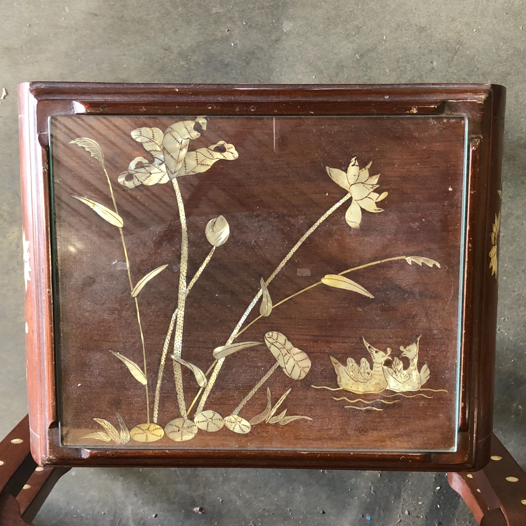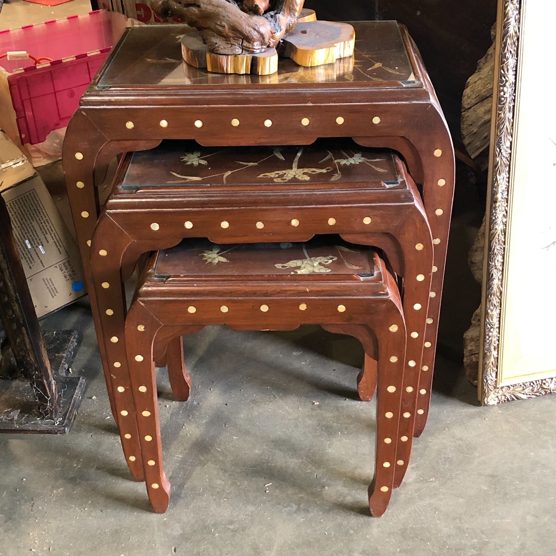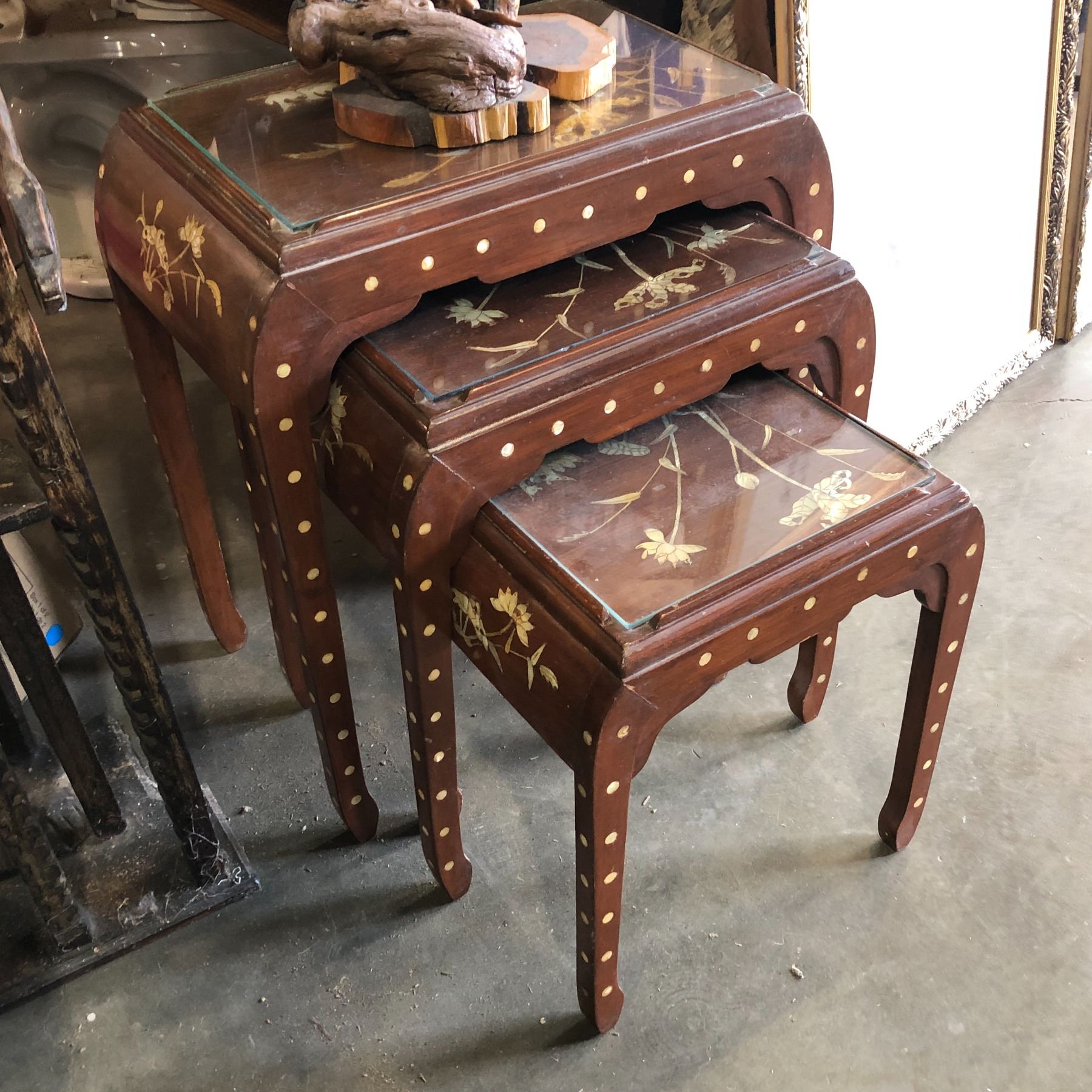 Set of 3 - Mother of Pearl Inlay - Oriental style nesting tables 27" height