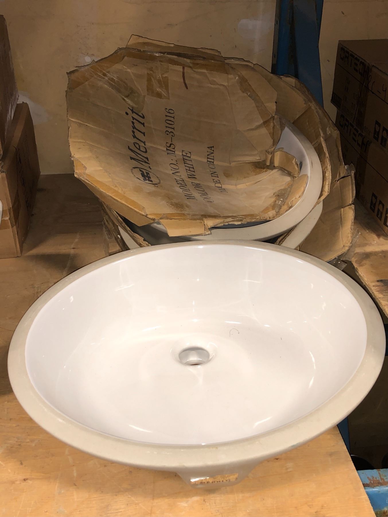 Set of 3 round white ceramic sinks