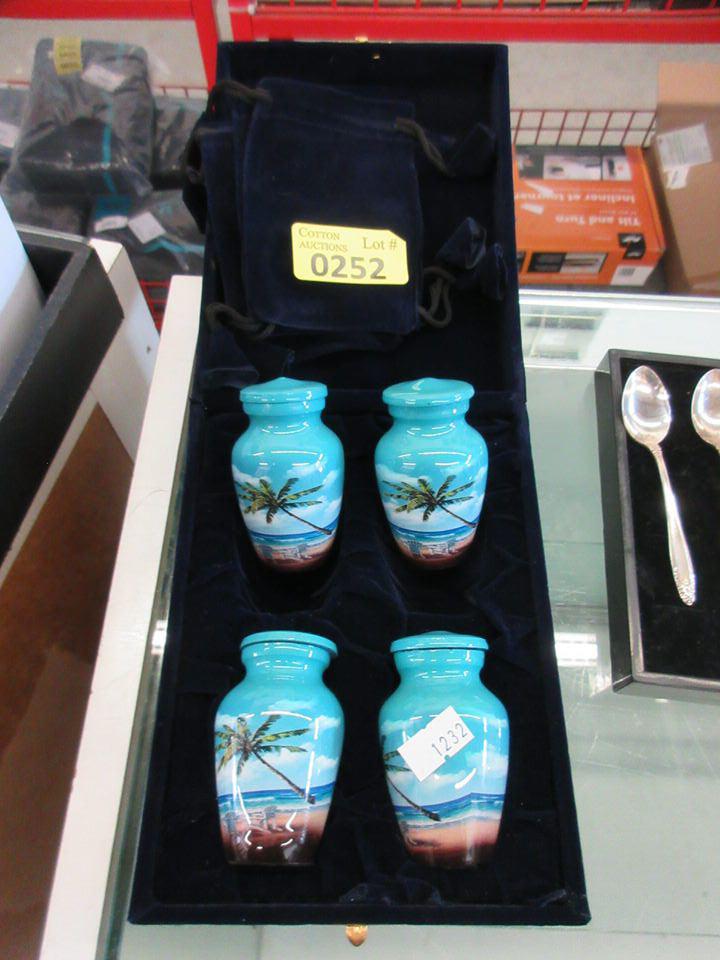 Painted Beach Scene on metal urns. Includes individual bags for the urns..