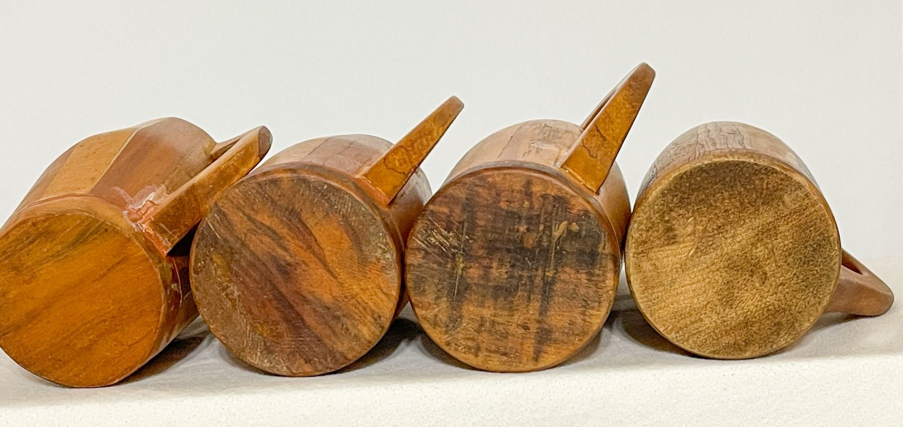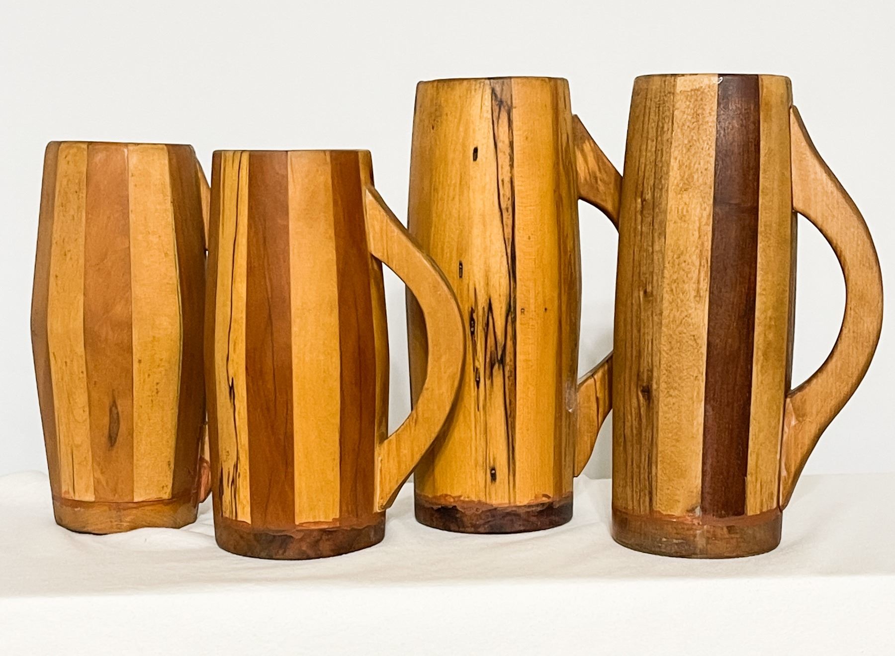 Very large size, taller ones approx 10.5” tall and shorter ones just over 9” tall, mixed wood tones with natural variations.