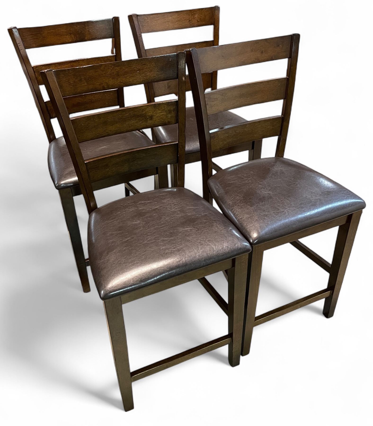 Set of 4 High Bar Brown Leather Country Farm Chairs