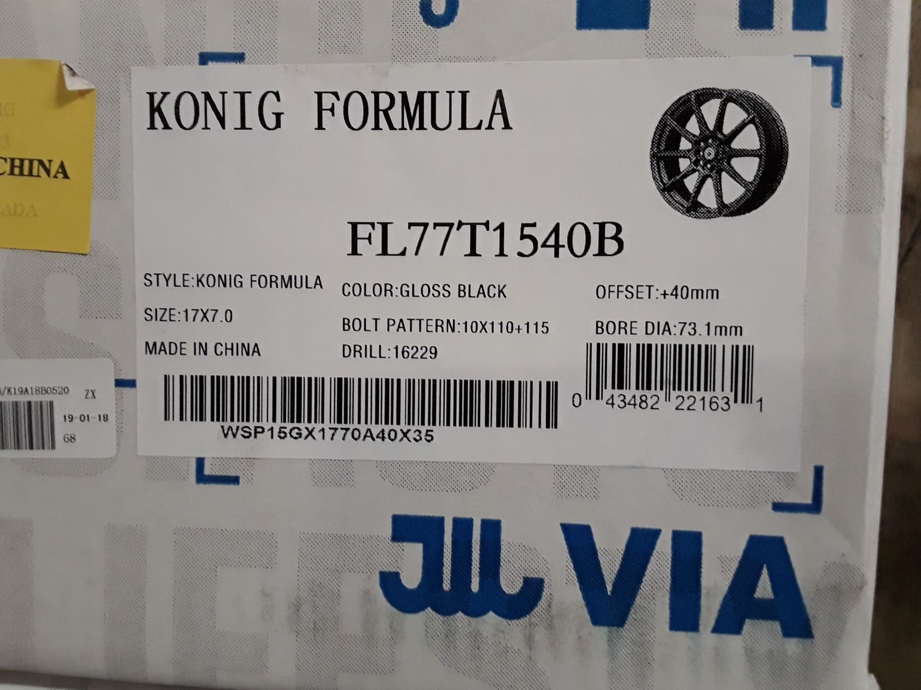 Set of 4 New In Box KONIG FORMULA GLOSS BLACK Dual Drilled Rims - 17X7.0 5X115-110 +40