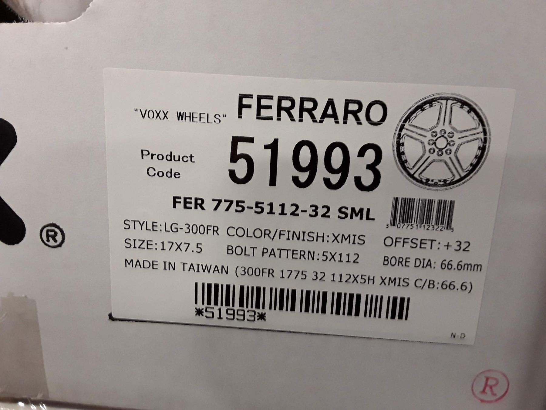 Set of 4 New In Box VOXX WHEELS FERRARO SILVER MACHINED RIMS - LIP 66.7 ML17X7 5X112 +32