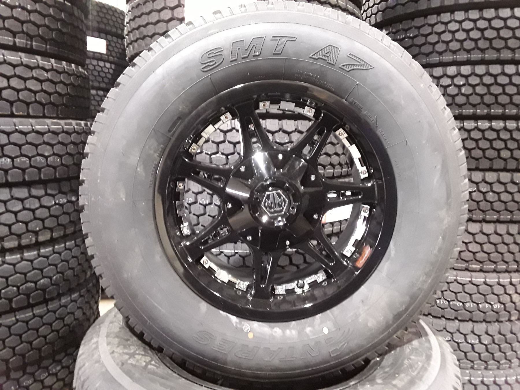 Set of 4 TIRE WHEEL PACKAGE 18" - 4 new All Season Antares SSMTA7 - 33x12.50R18 mounted on Mayhem Missile Rims - 18x9 8-165.1/8-170 +18 Black 130.8mm
