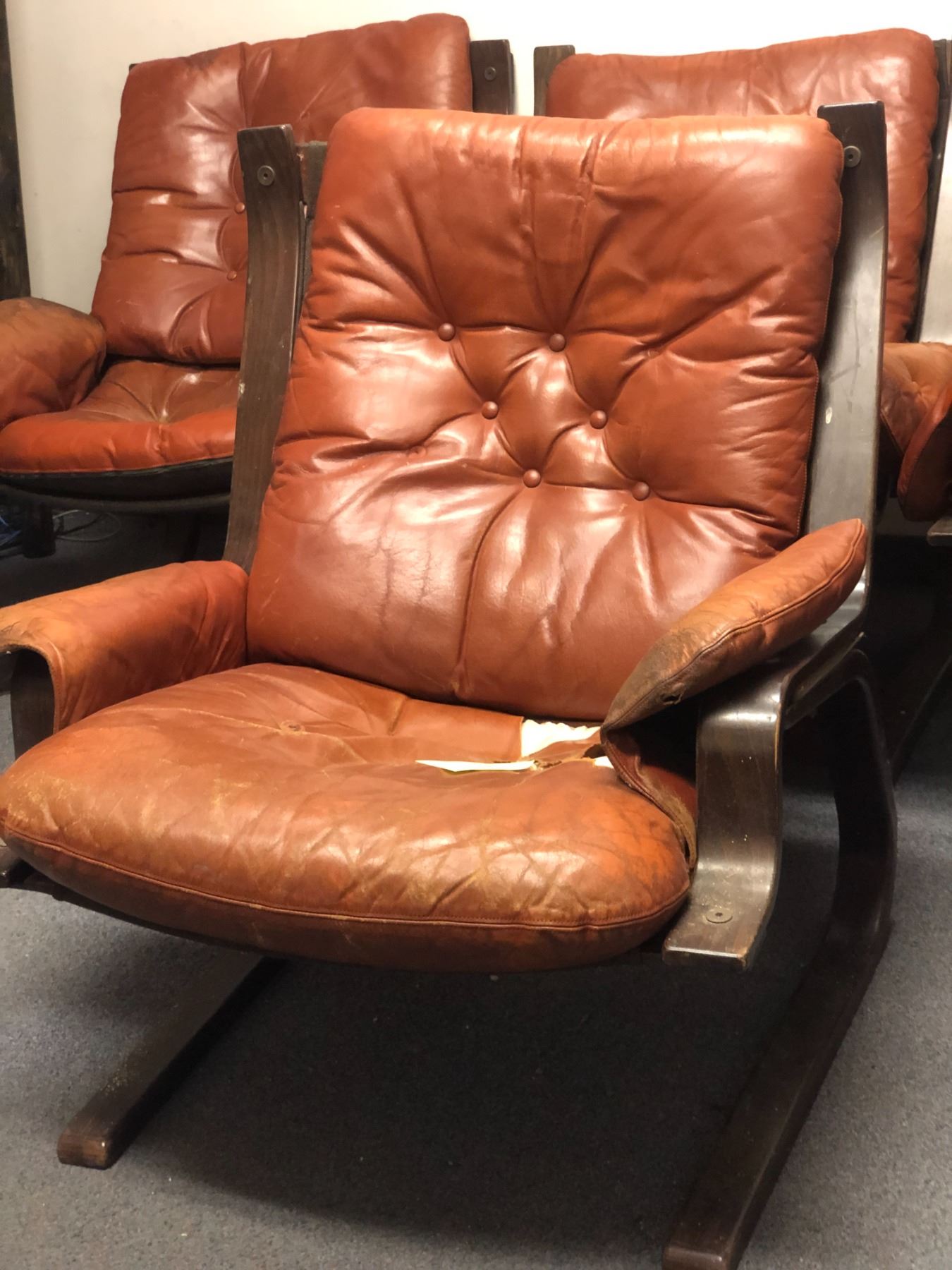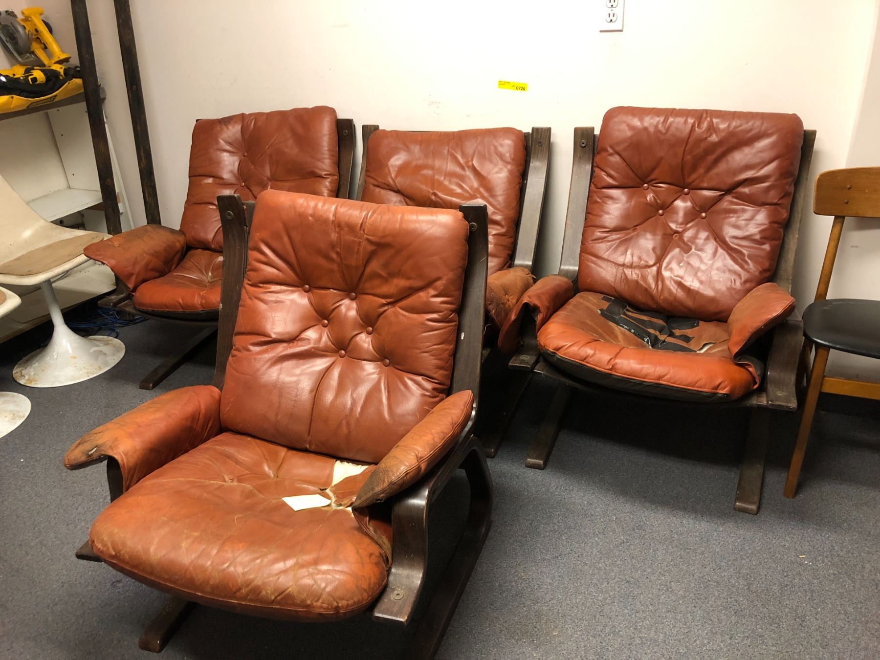 Set of 4 broken down designer leather chairs
