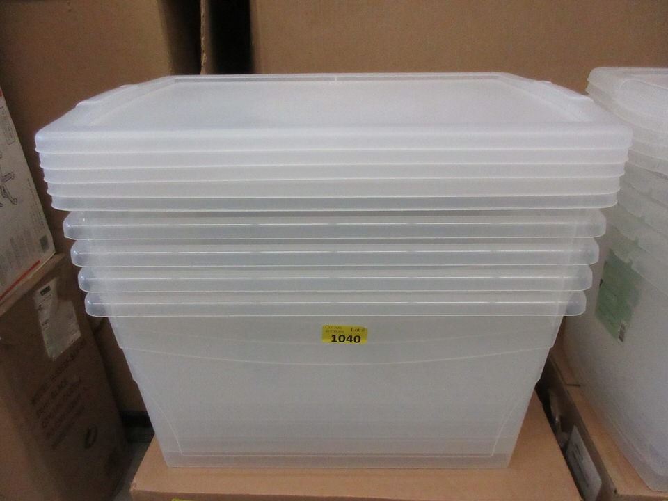 Set of 5 New 50 L Clear Storage Totes w/ Lids
