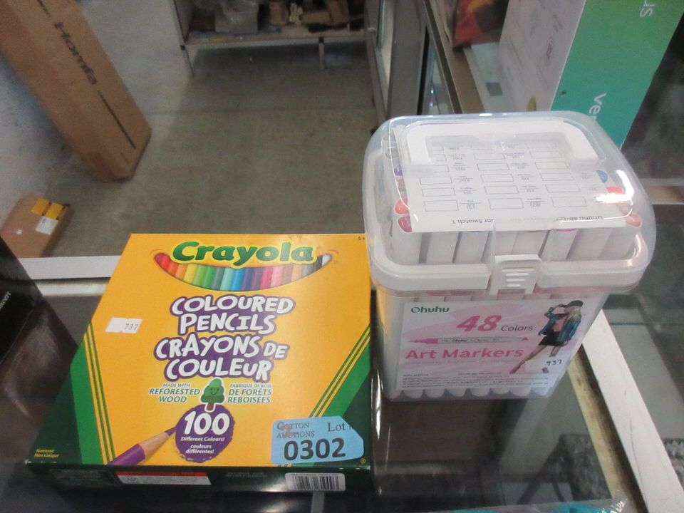 48 Dual Tip Art Markers and 100 Pencil Crayons.