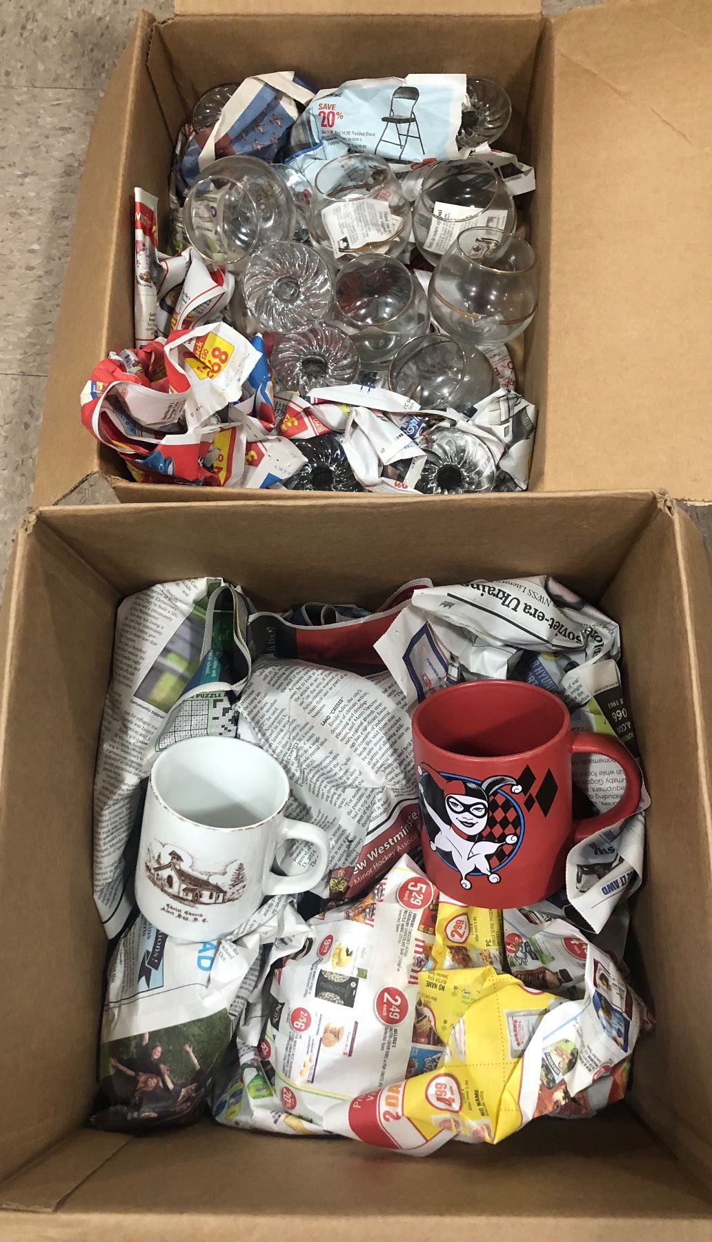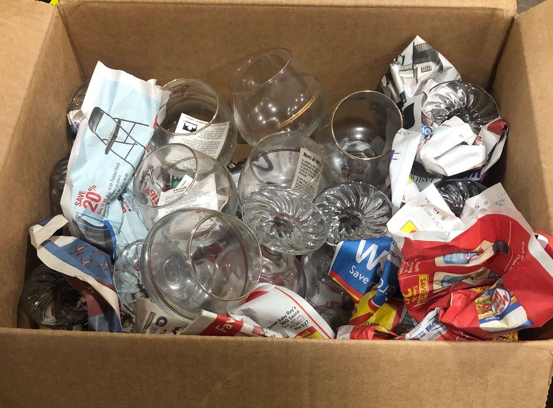 Set of Petro Canada Olympic Glasses with 22-carat-gold accents and box full of assorted cups