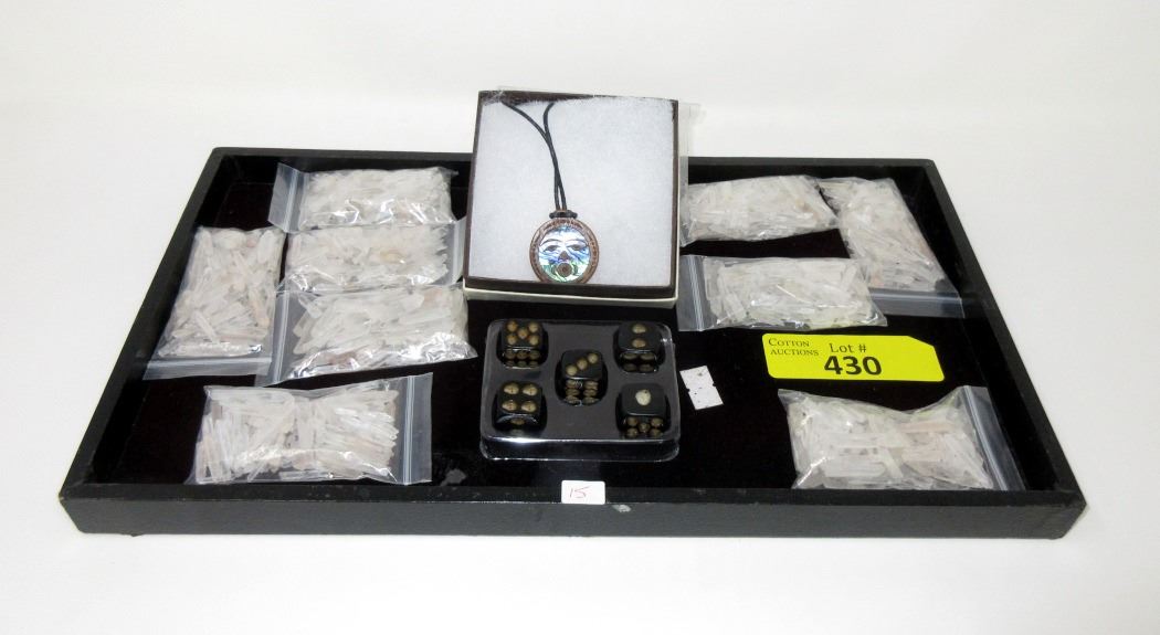 Set of Skull Pip Dice, Necklace & Healing Crystals