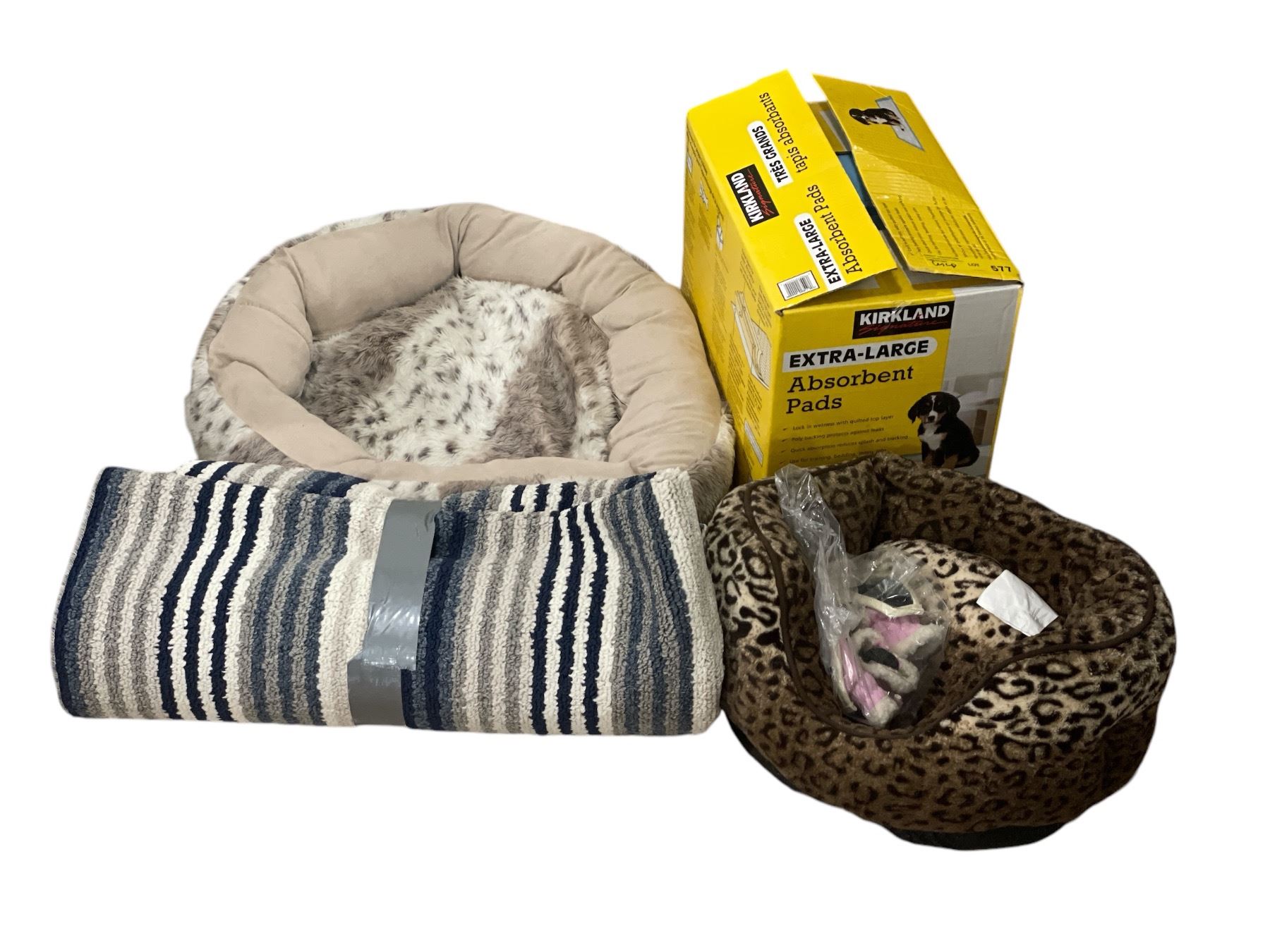 Set of assorted items - includes Kirkland XL absorbent dog pads / mat & 2 dog beds