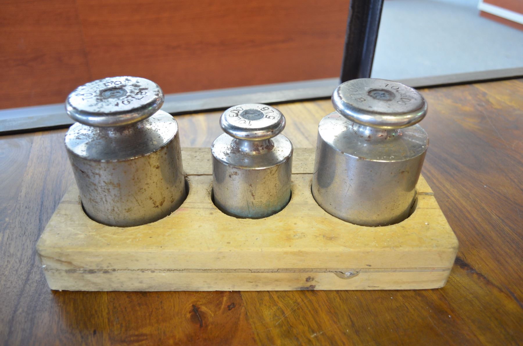 Set of three steel weights (2- 10lbs & 1-5lb)