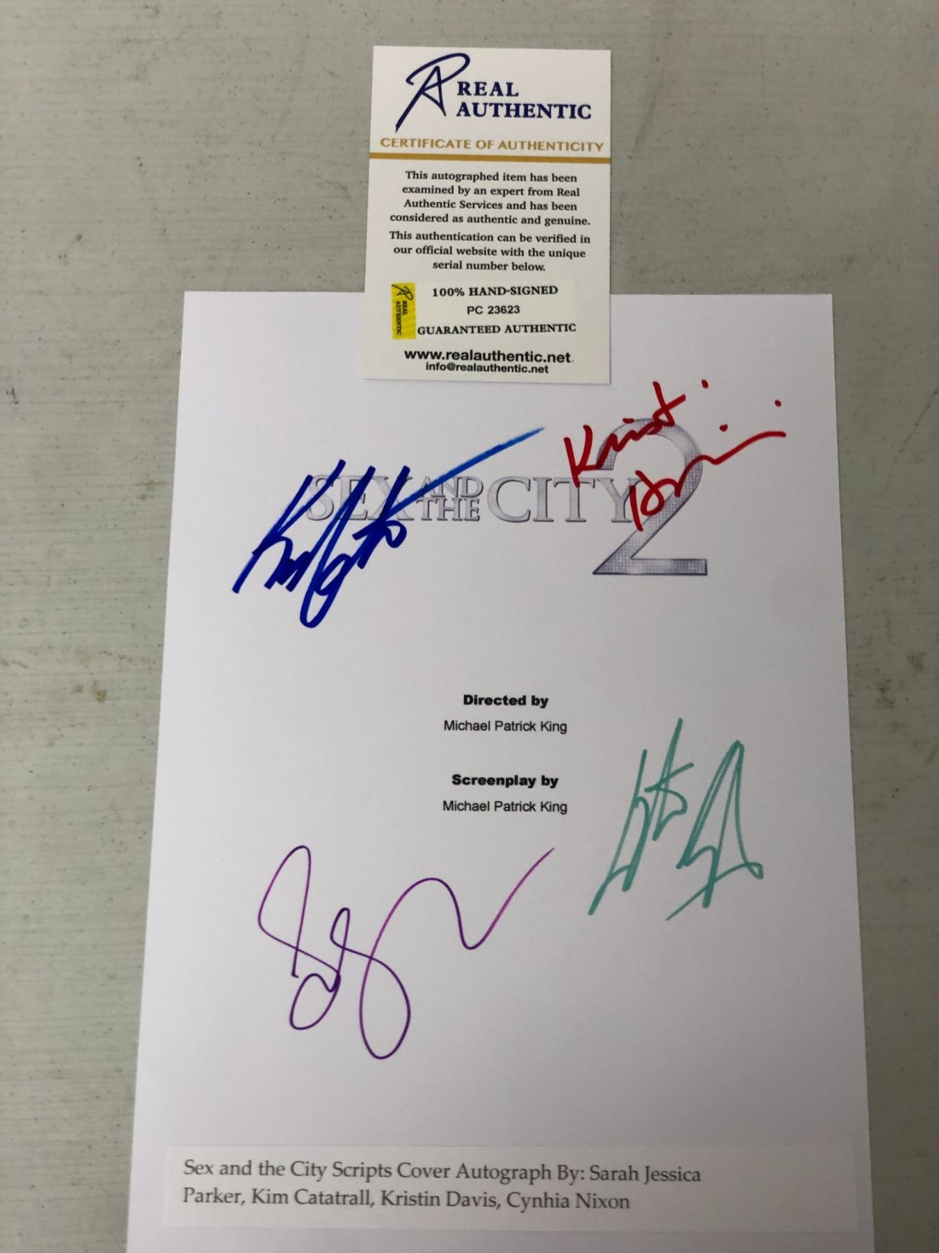 "Sex and The City 2" - Signed Script Cover by Cast w/COA from Real Authentic - includes autographs of Sarah Jessica Parker/Kim Cattrall/Kristin Davis & Cynthia Nixon
