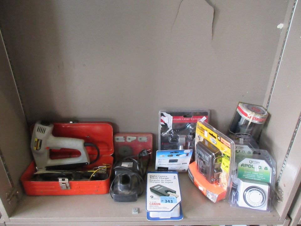 Dual outlet timers, digital camera travel charger , staple gun, Bushnell trail camera and more.