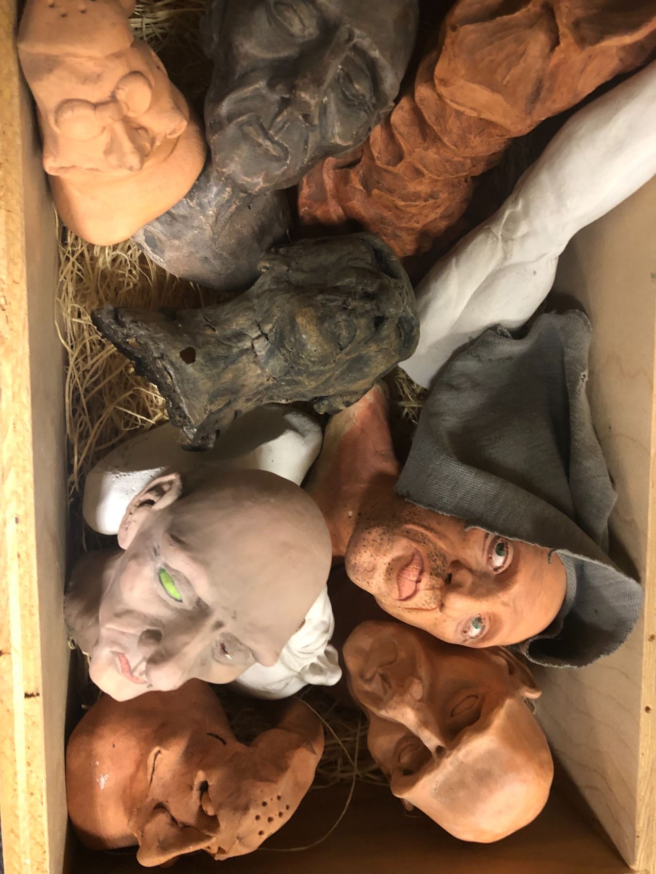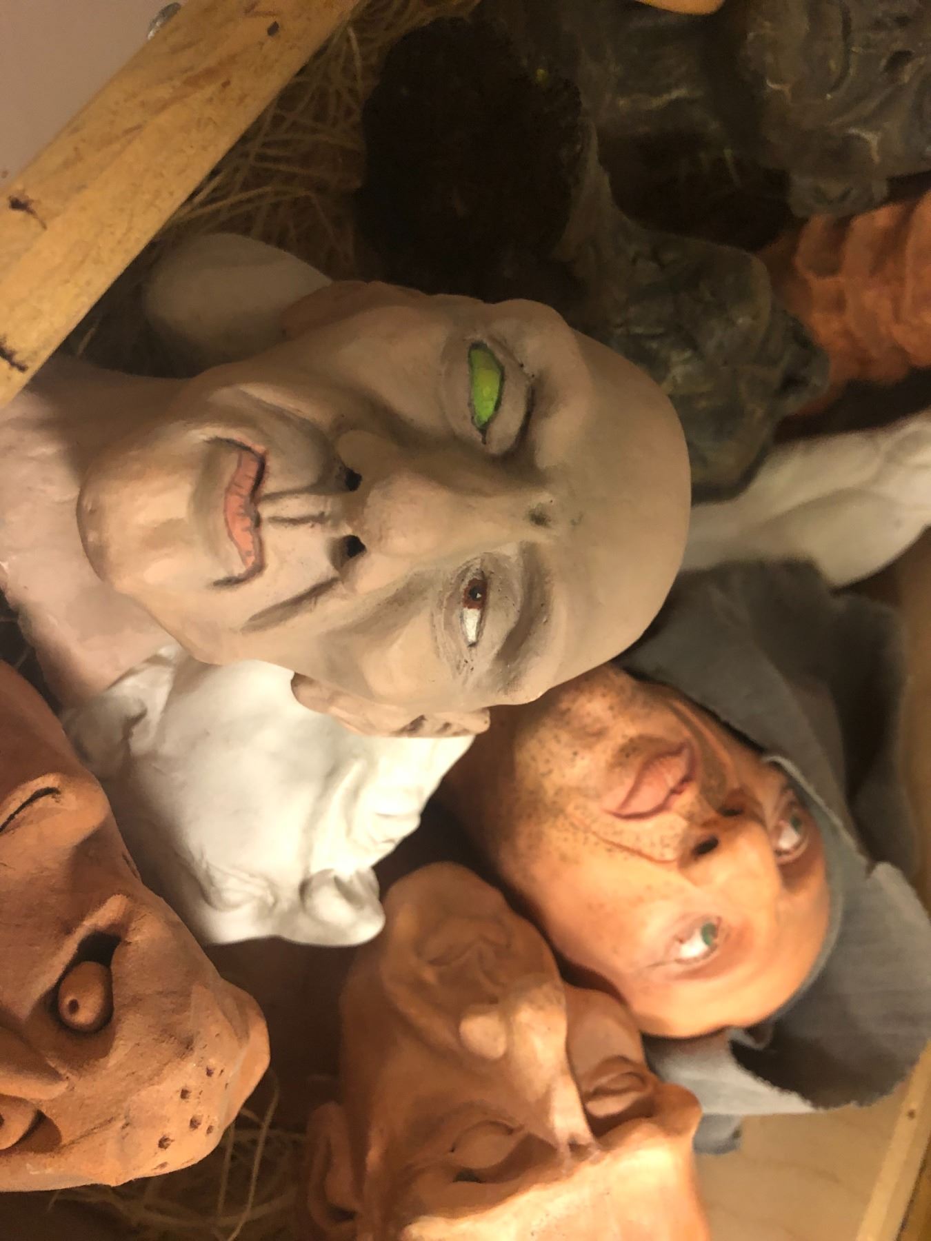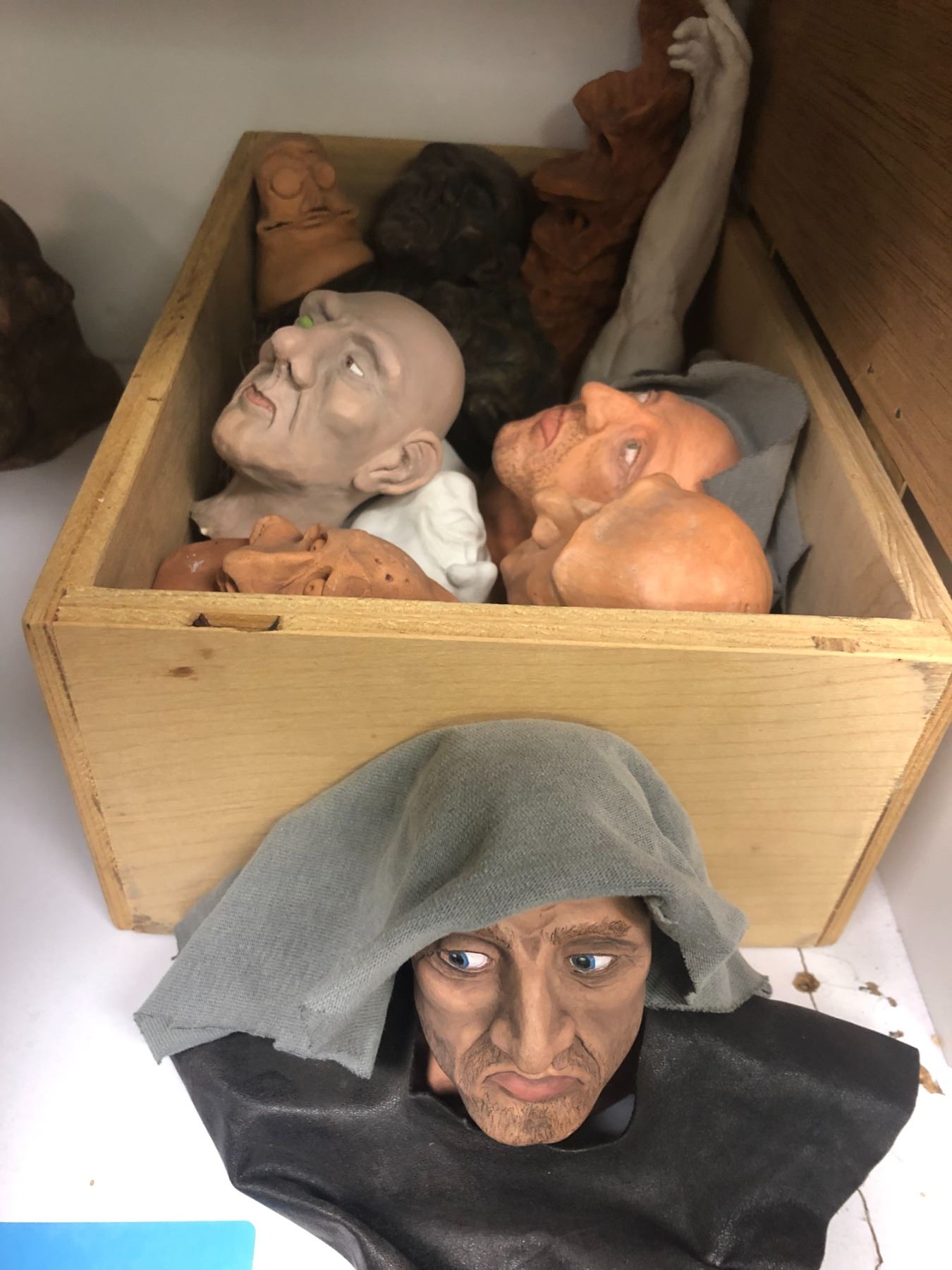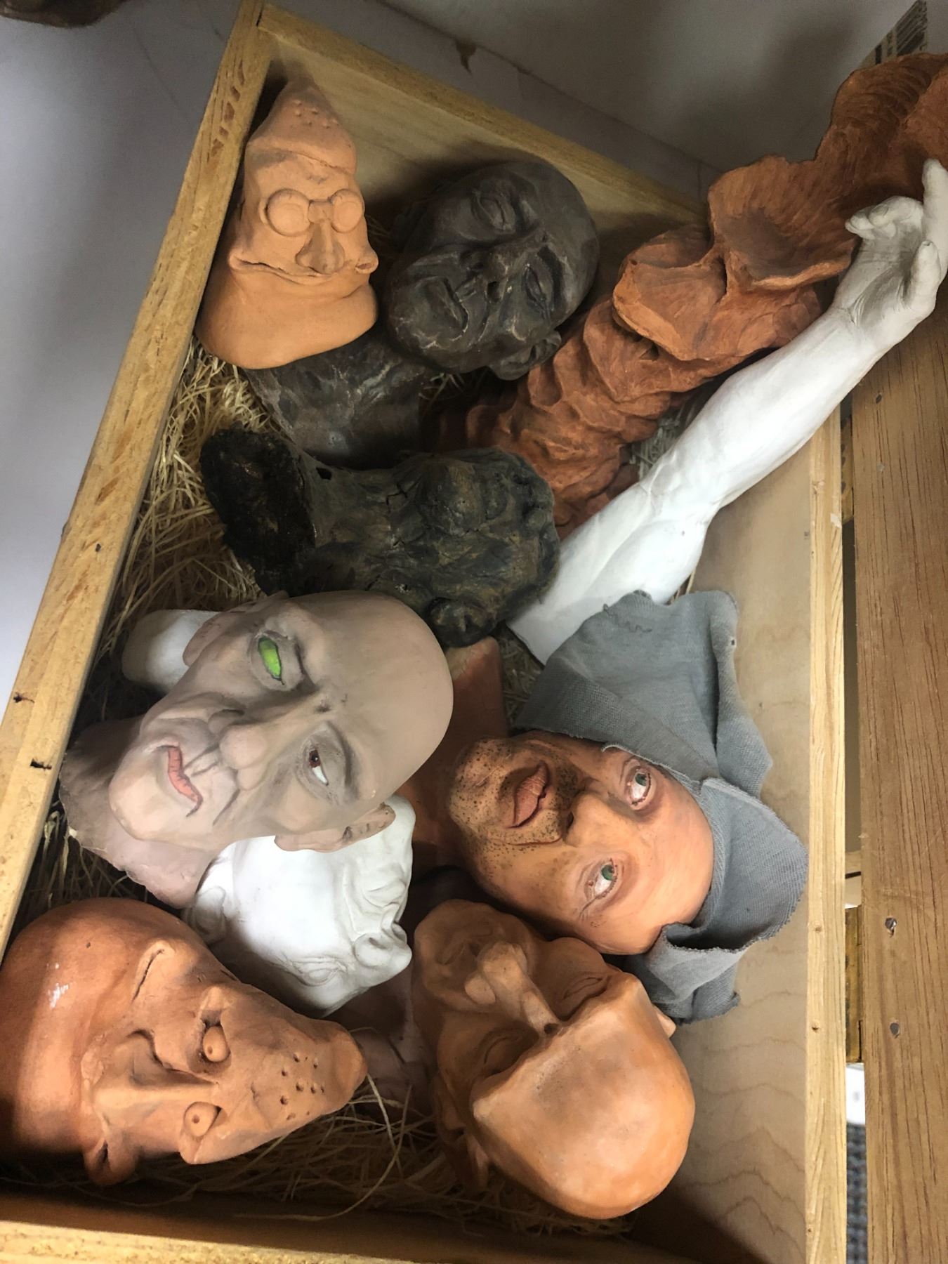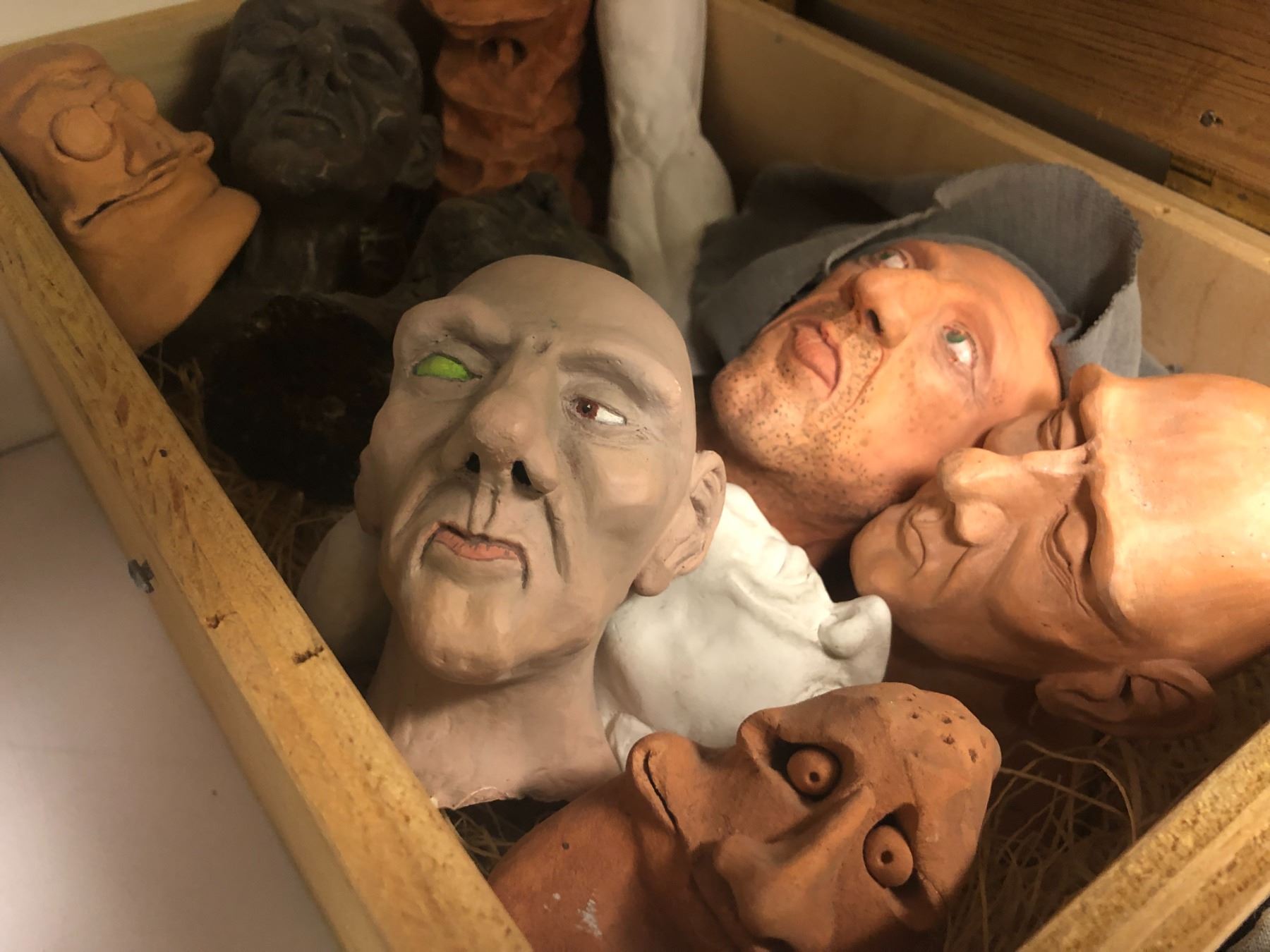 Shelf Lot of Original Sculpturs and Characters by Aktonn. 10 pieces. Realistic heads and arms.
