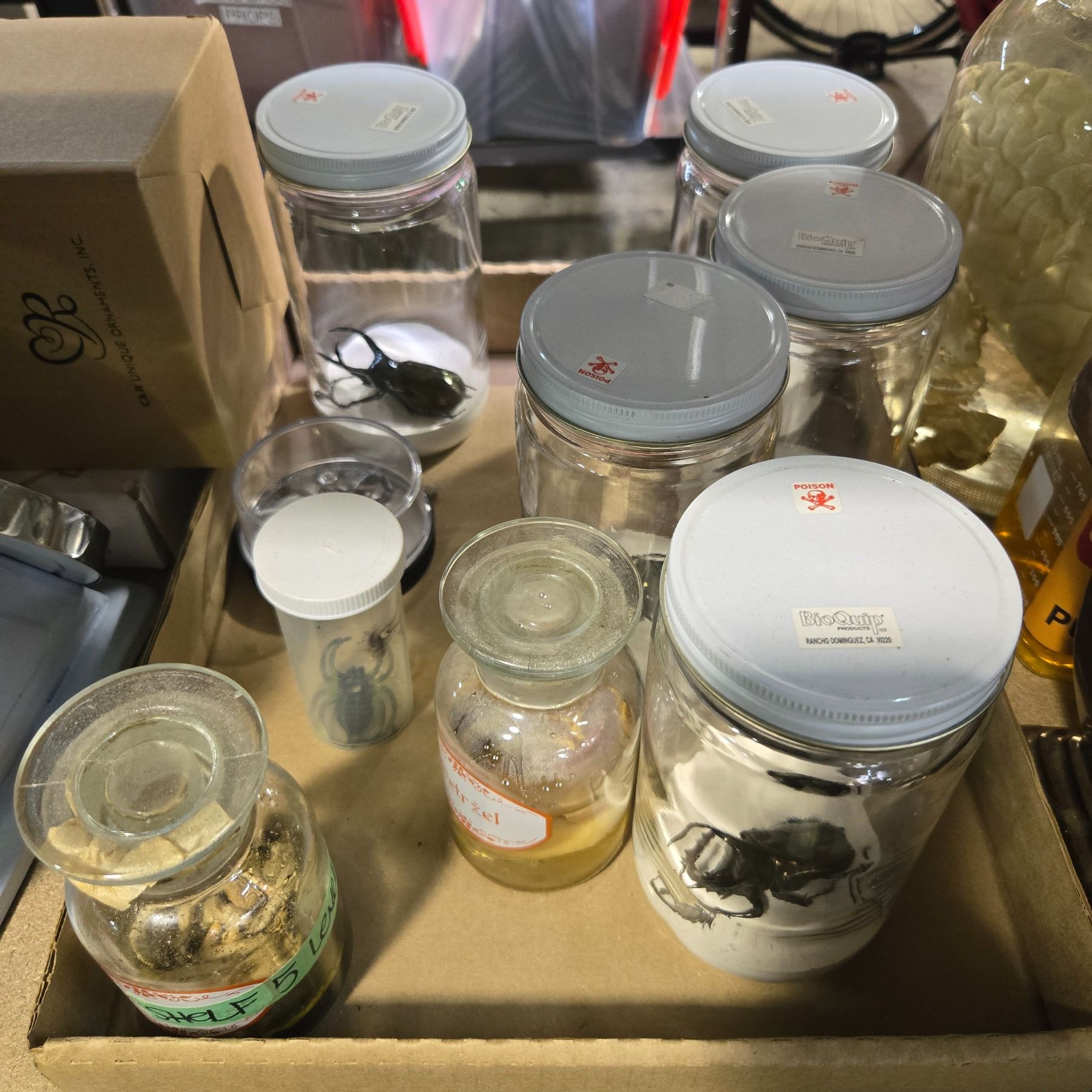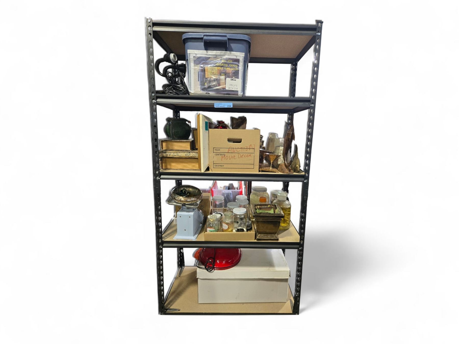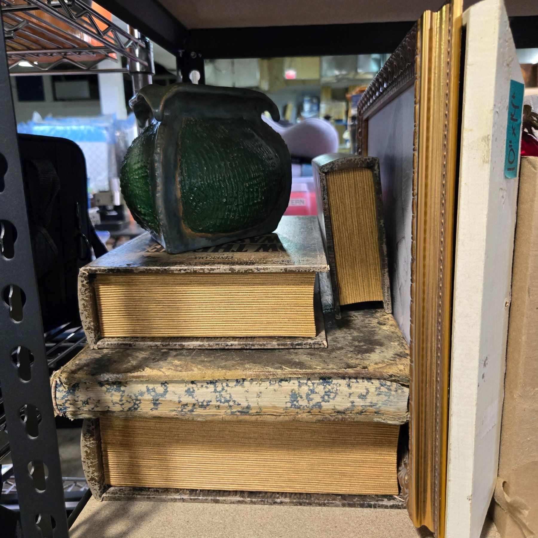 Shelf Movie Set Dec Content Lot - includes Vintage Office Decors/Lab Jars/Old Books & More