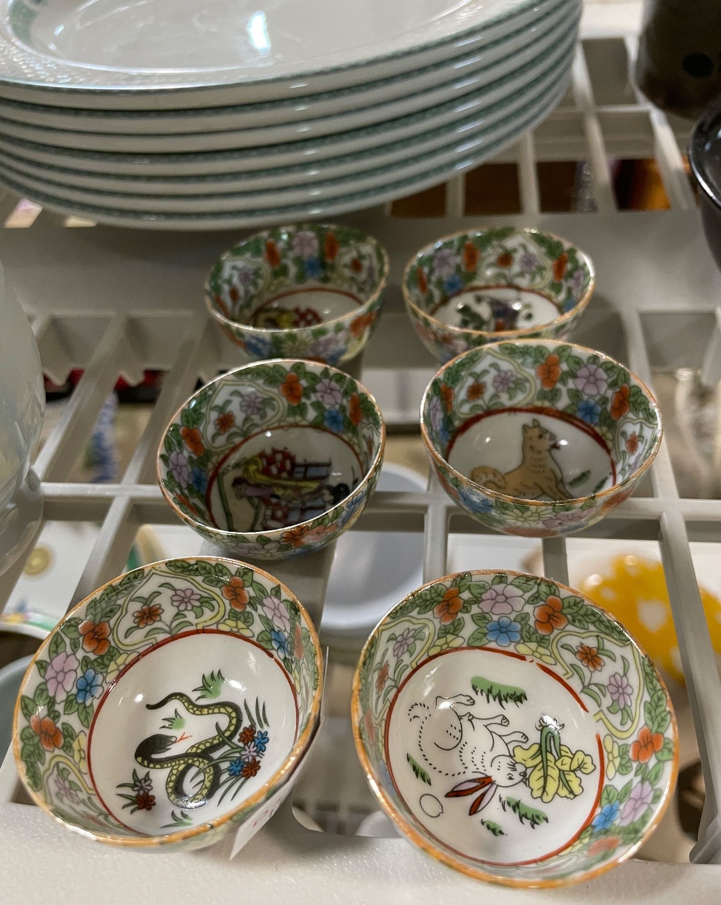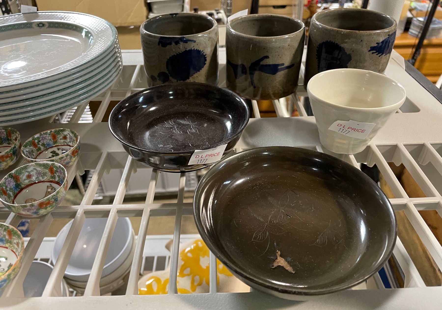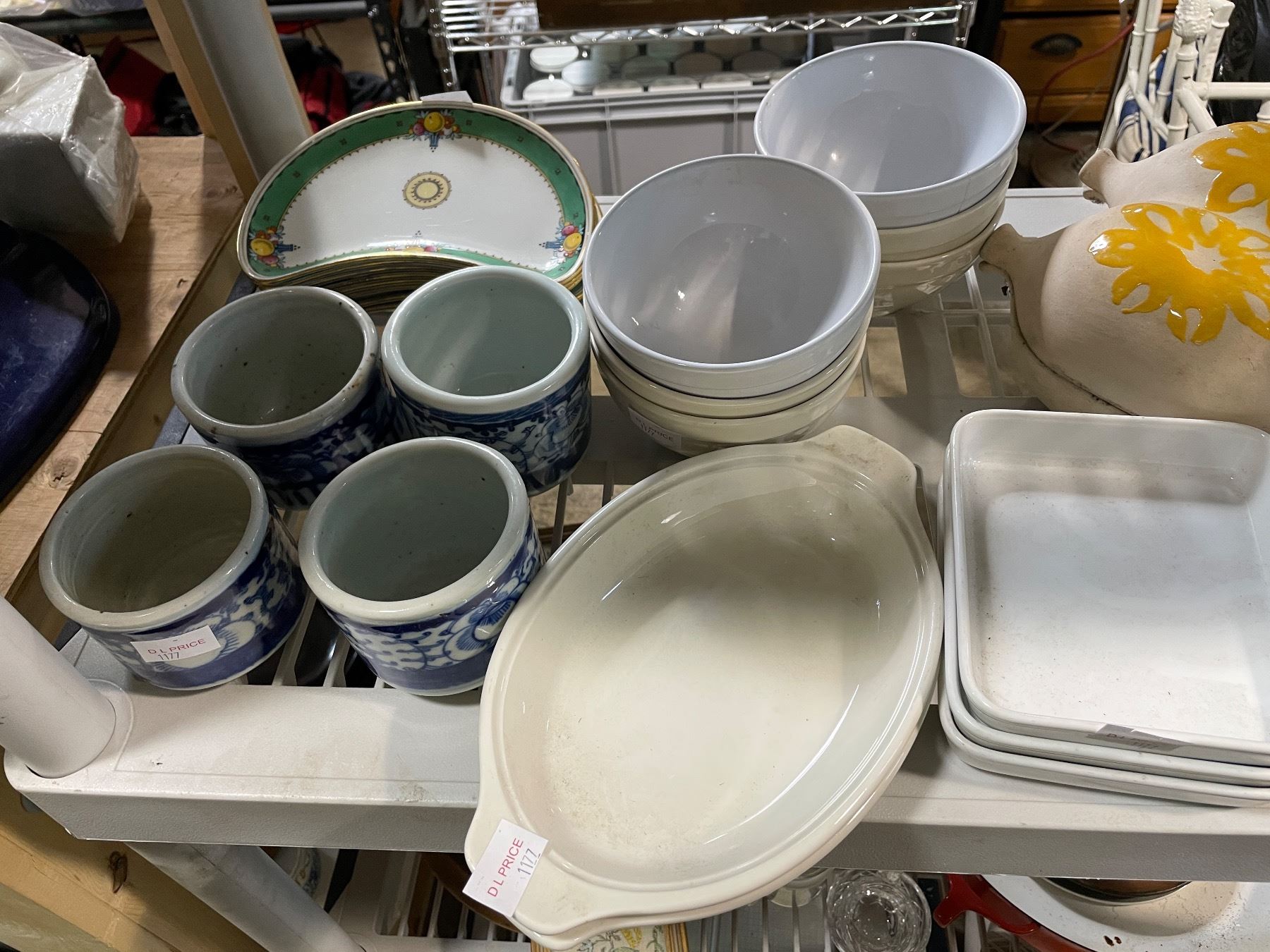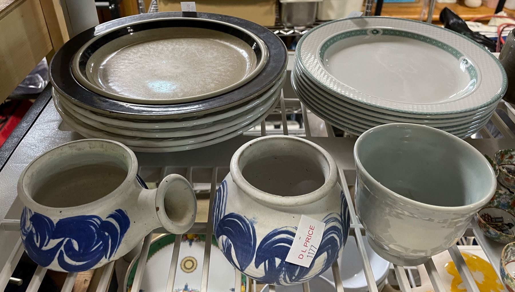 Shelf Vintage Dishware & Tableware Lot - includes Hand Painted Chinese Tea Set/Minton England 8-pcs Porcelain Plates & More