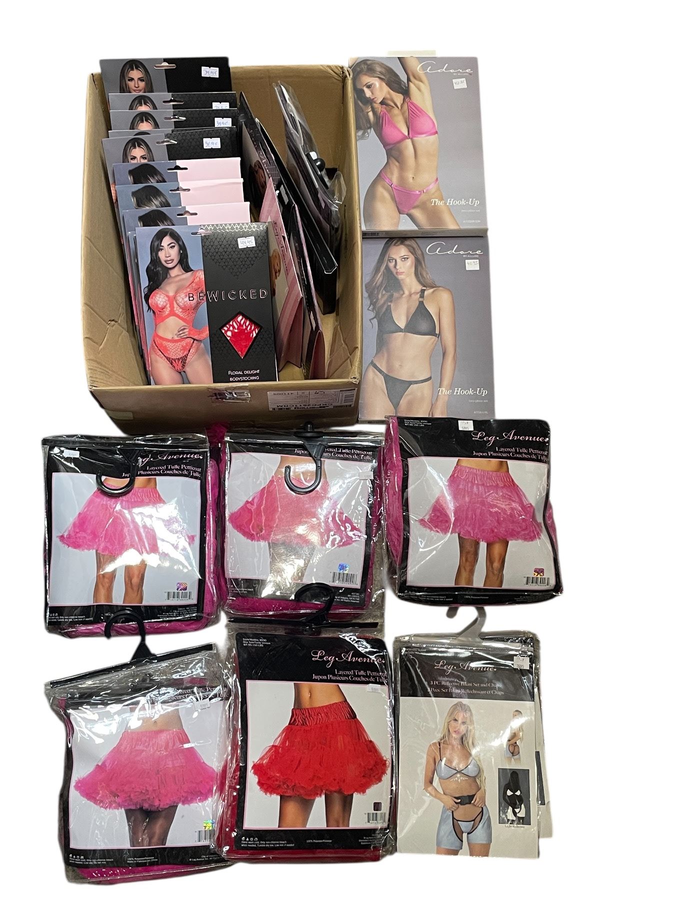 Shelf lot of Lingerie/Bikini Set, Tulle Petticoat, Body Stocking, Etc.