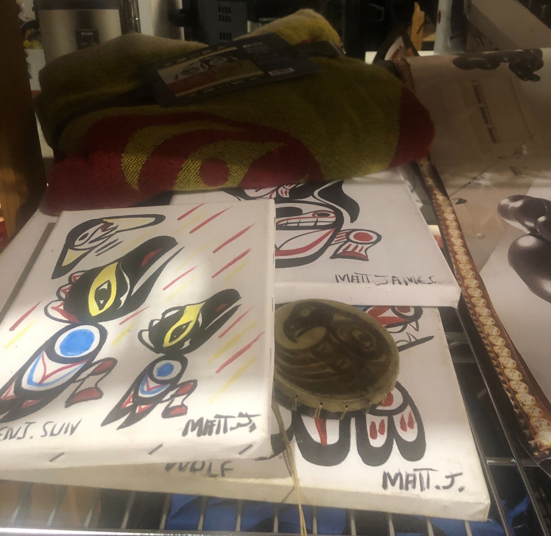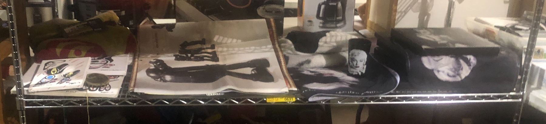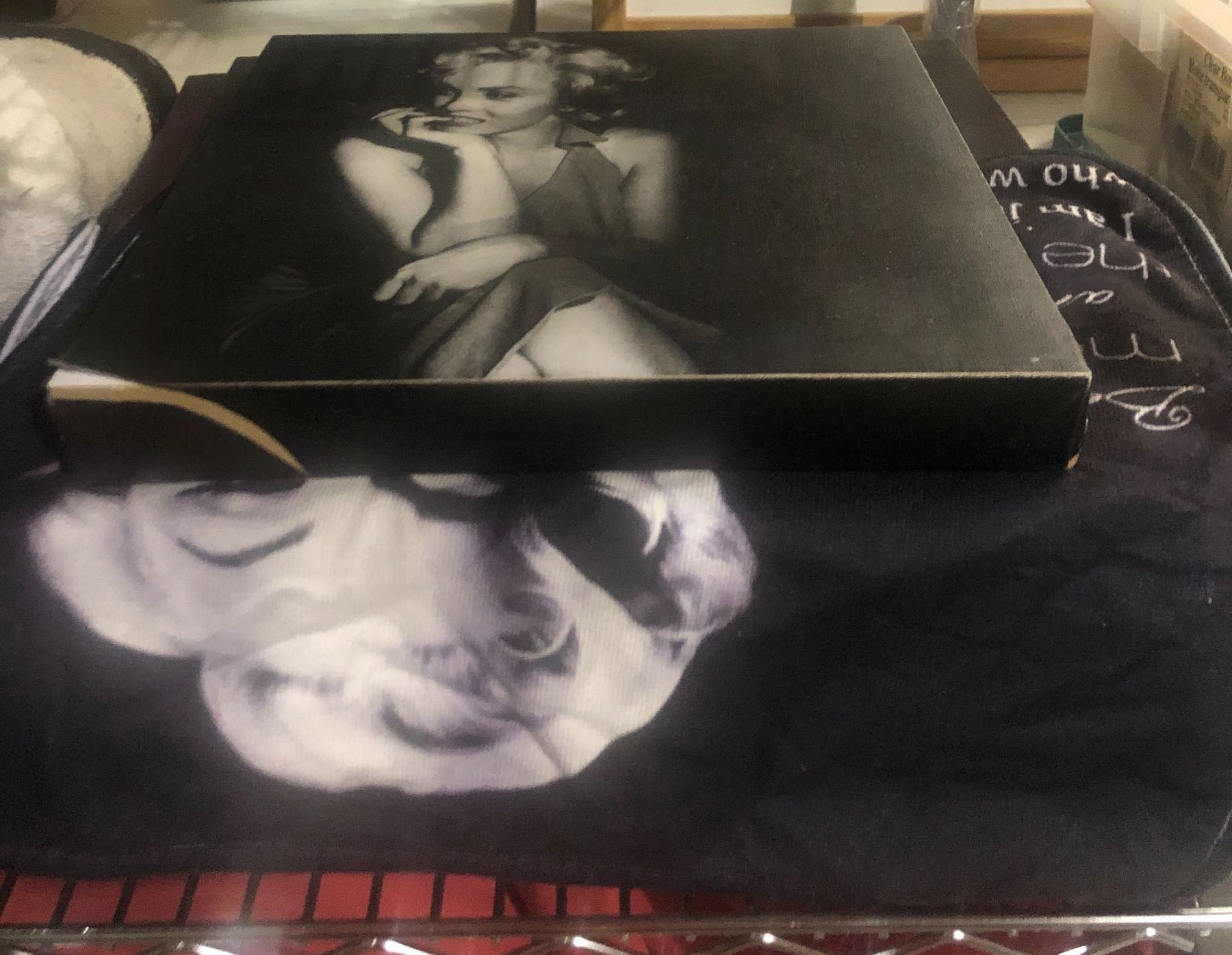 Shelf lot of Marilyn Monroe merchandise, native art on canvas, posters, etc...
