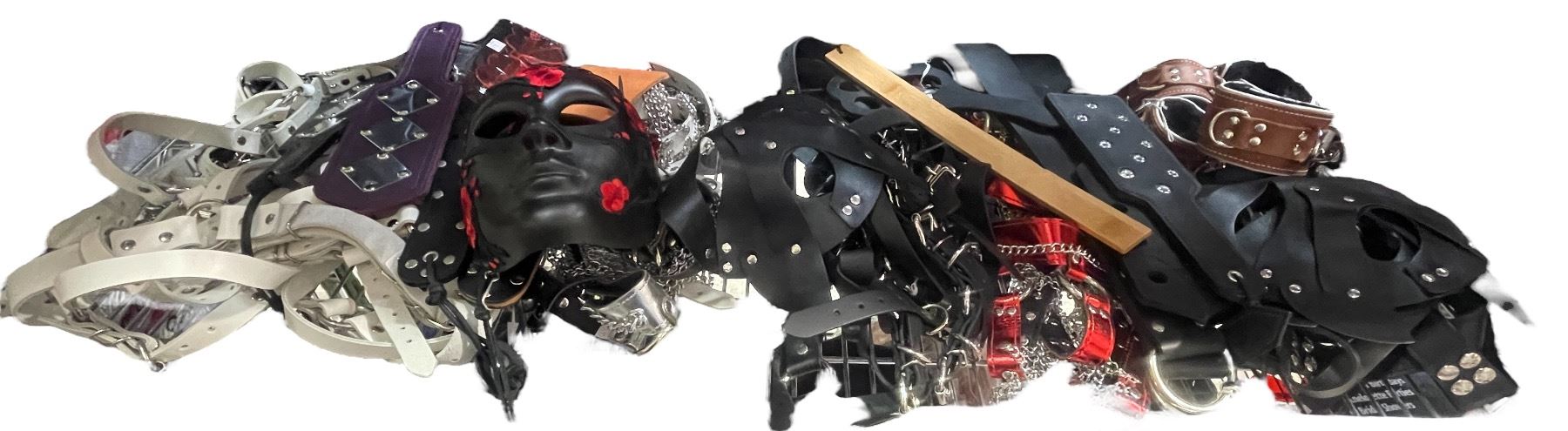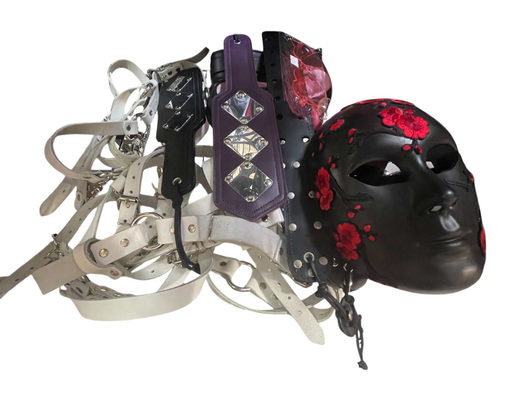 Shelf lot of Misc - Mask, Whips, Restraints, Etc.