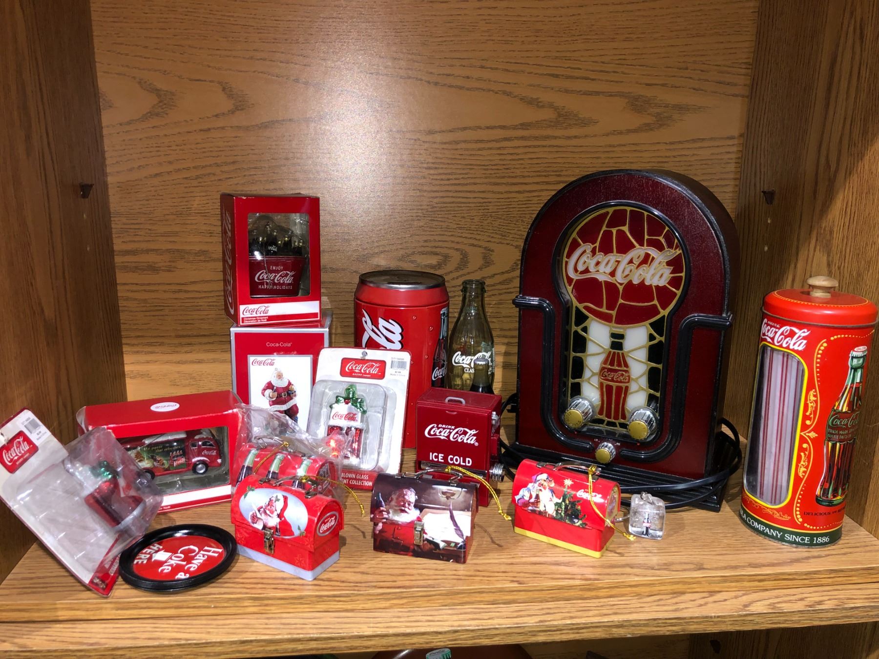 Shelf lot of assorted Coca Cola collectibles