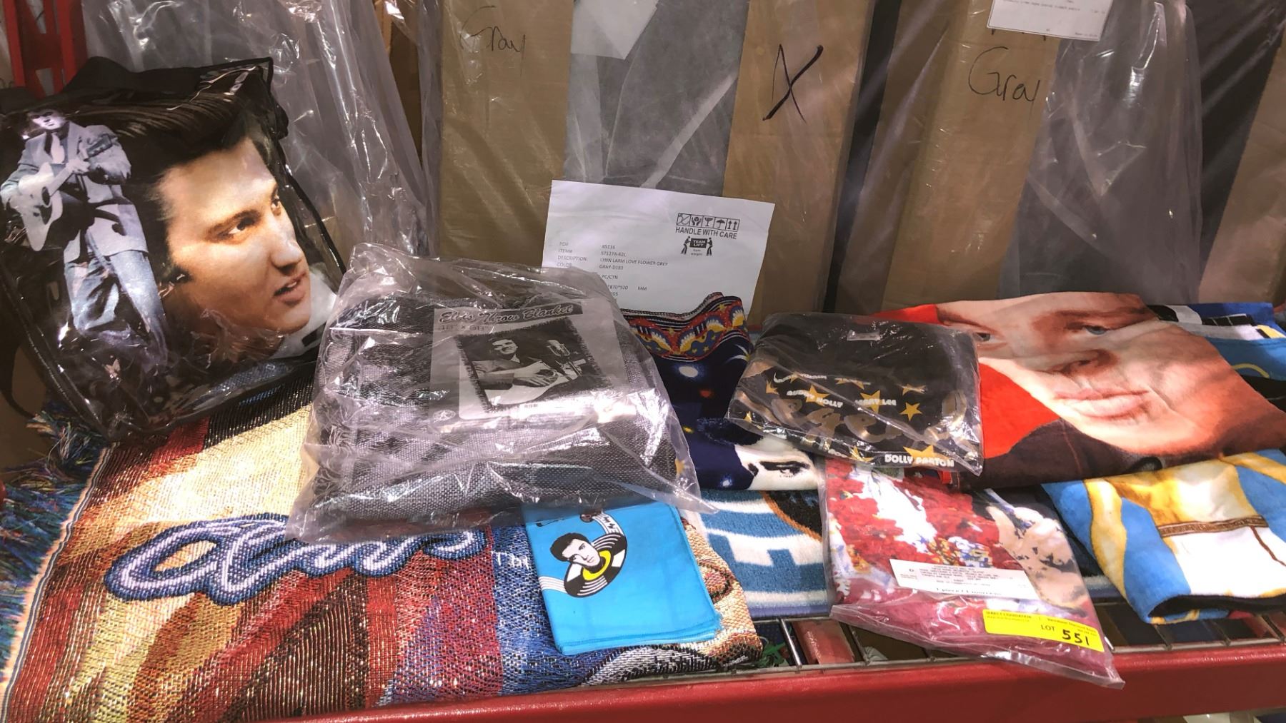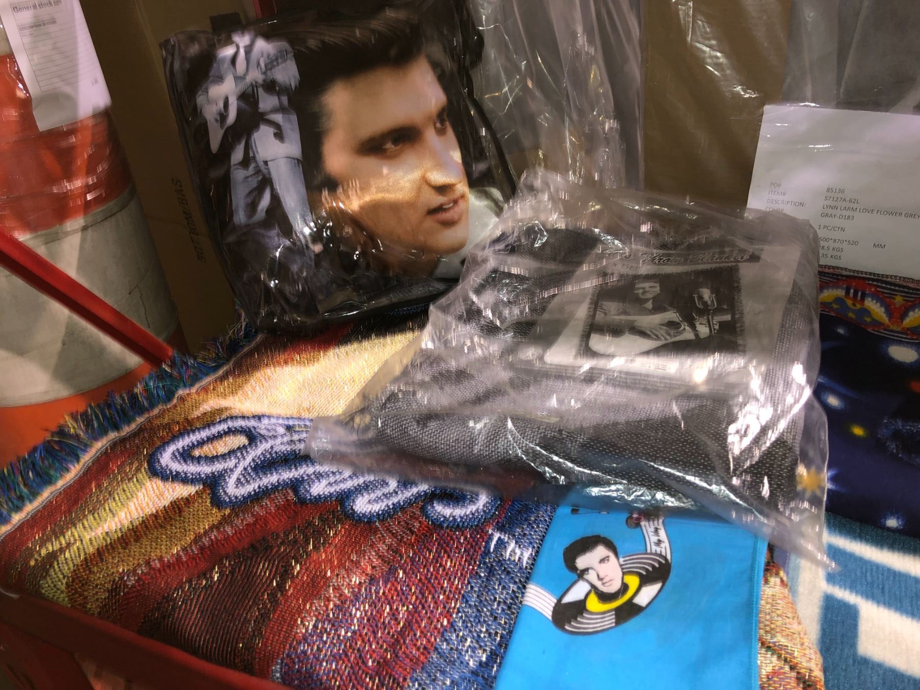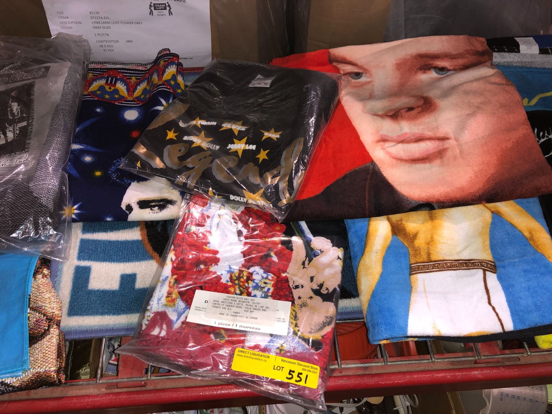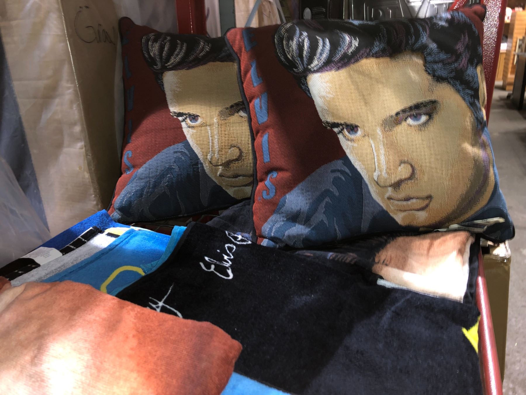 Shelf lot of assorted Elvis Presley collectible items - blankets/ towels/ pillows etc.