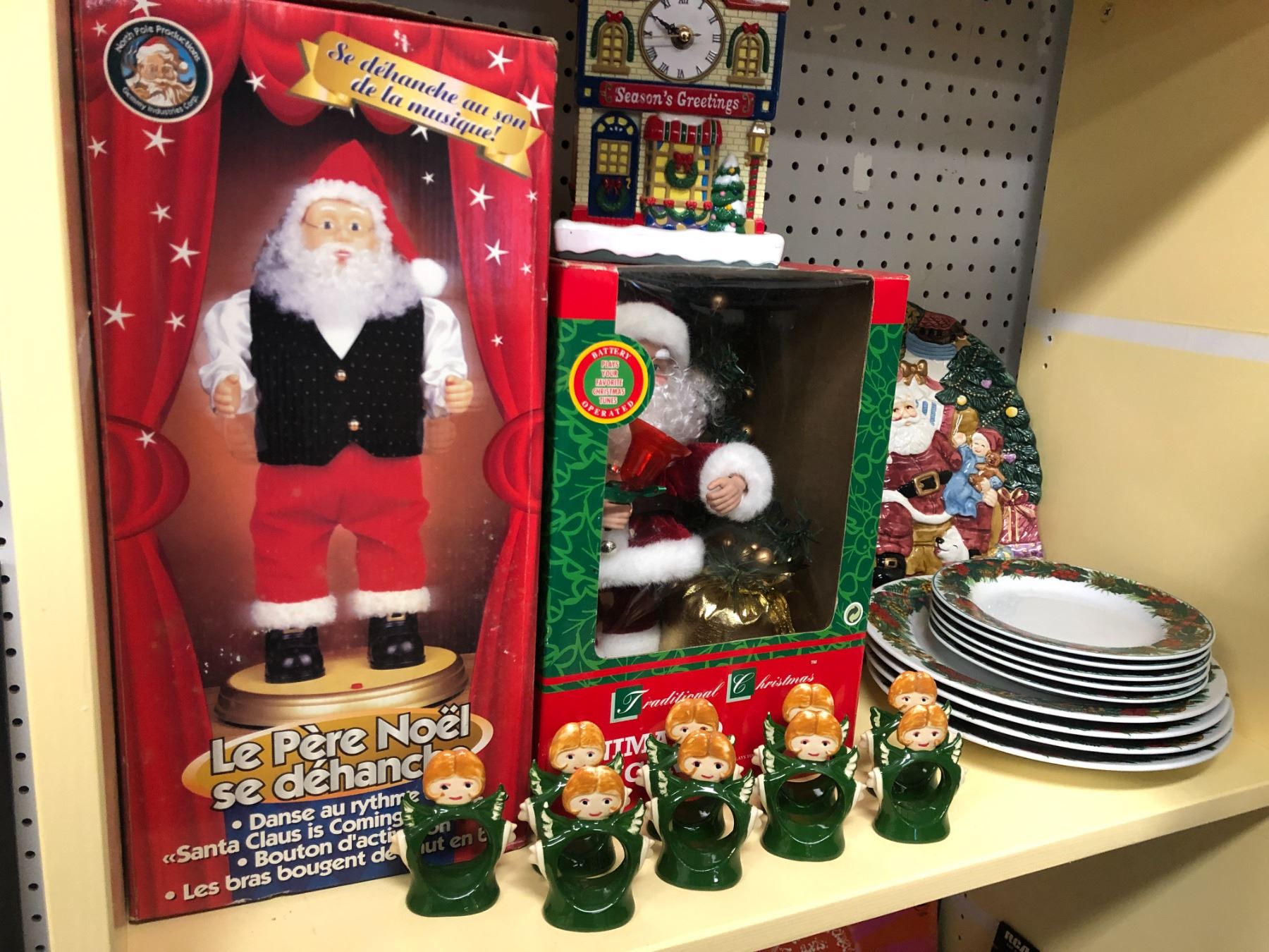 Shelf lot of assorted Holiday Christmas decorations