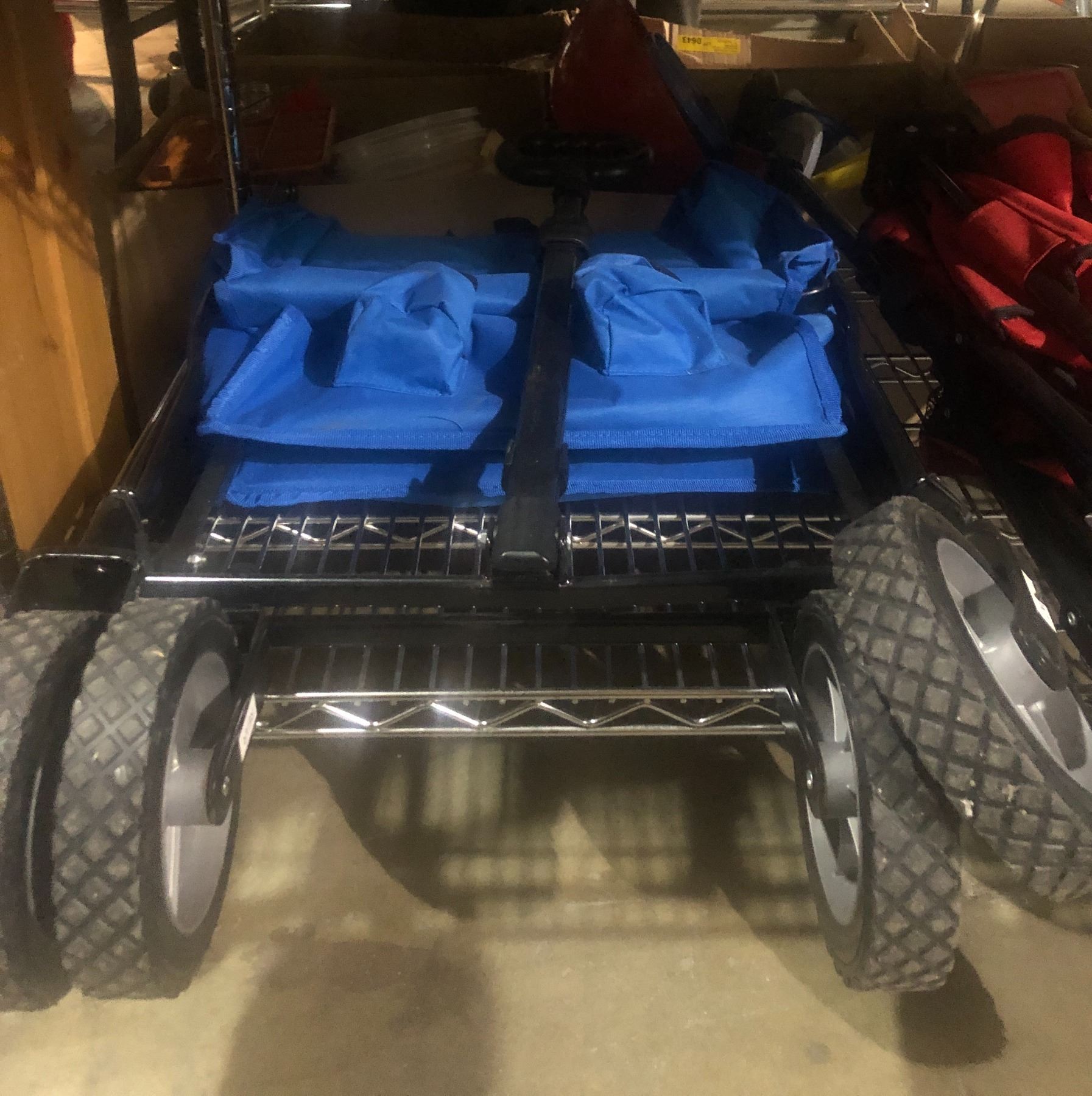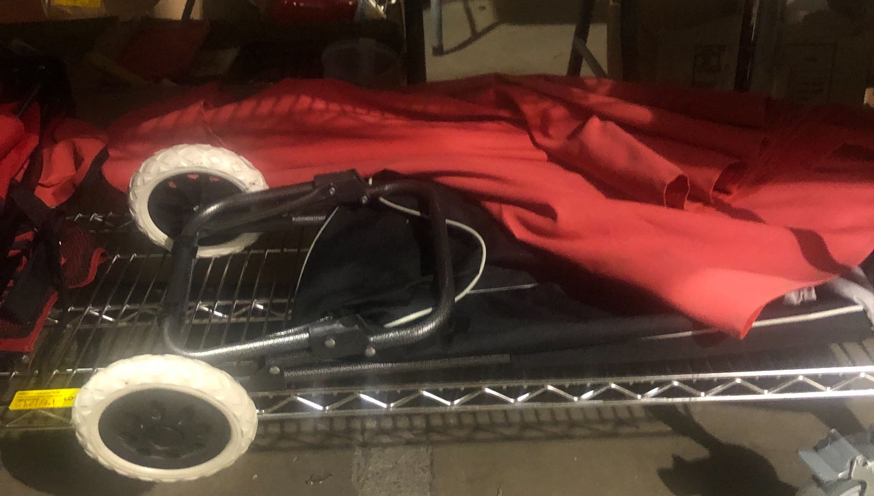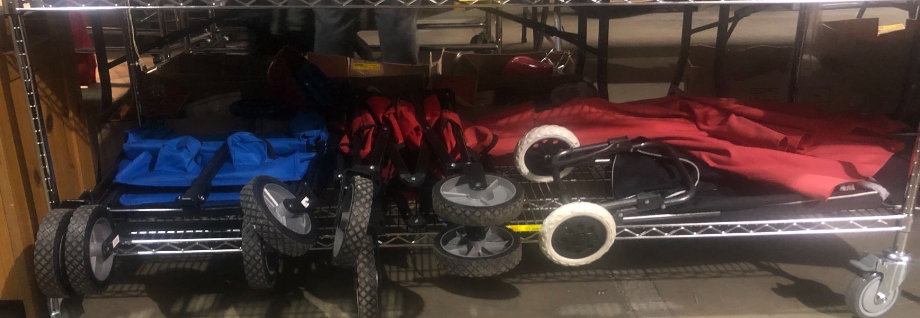 Shelf lot of assorted carts & patio table umbrella