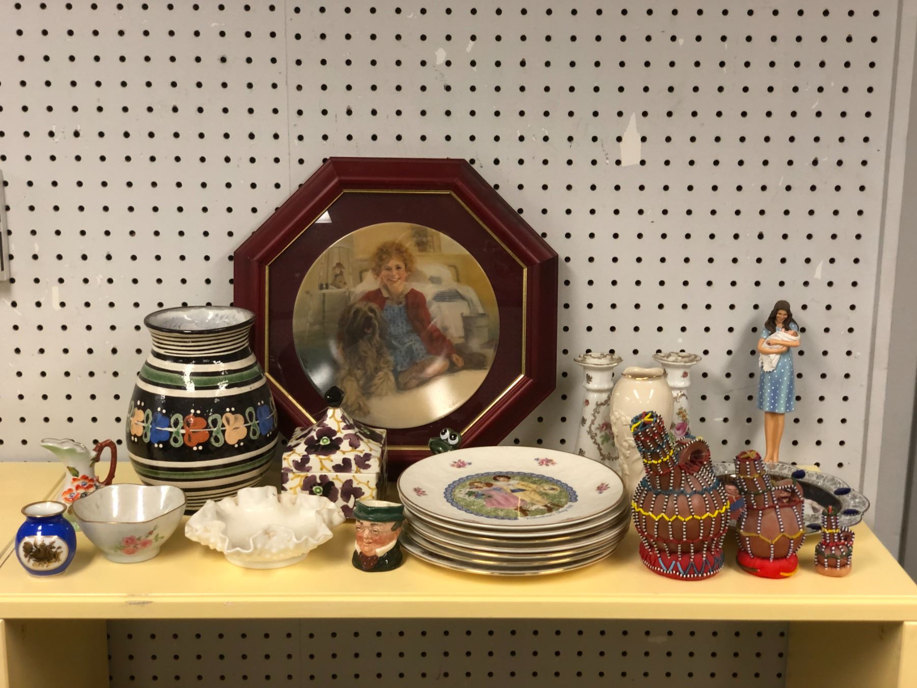 Shelf lot of assorted collectibles & decorative household items