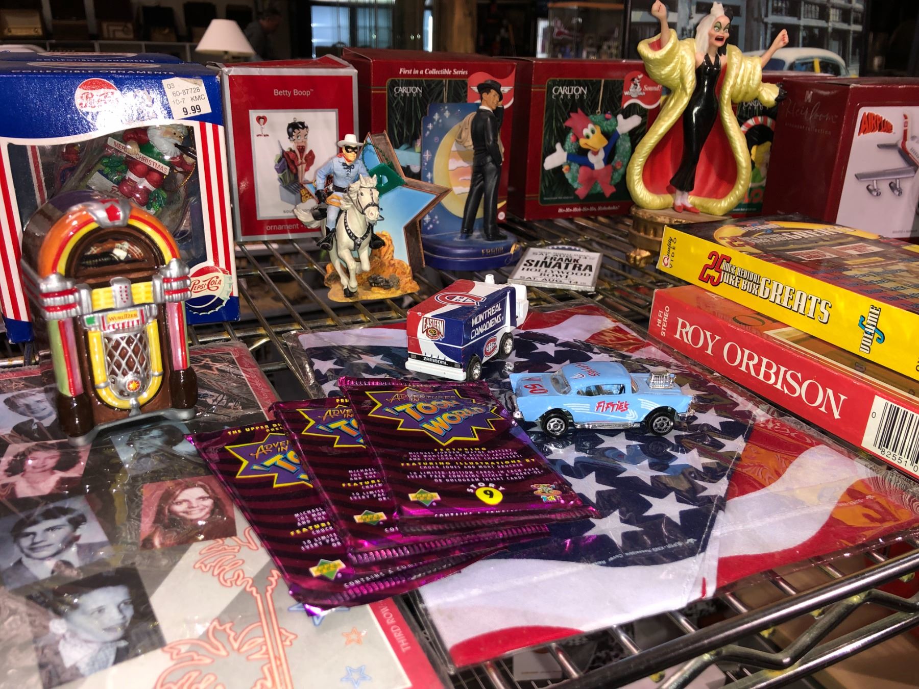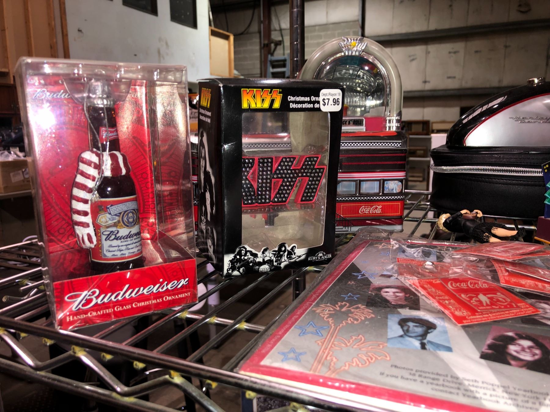 Shelf lot of assorted nostalgic Hollywood & band collectibles - Christmas tree ornaments/ figurines etc.