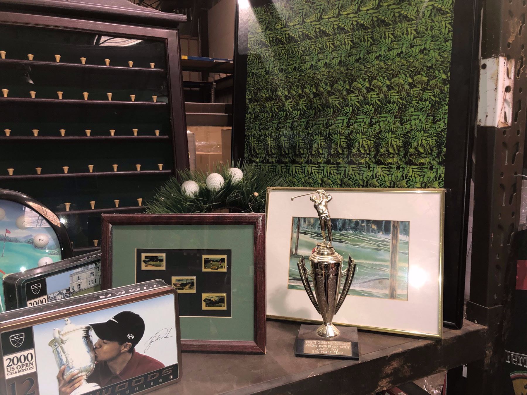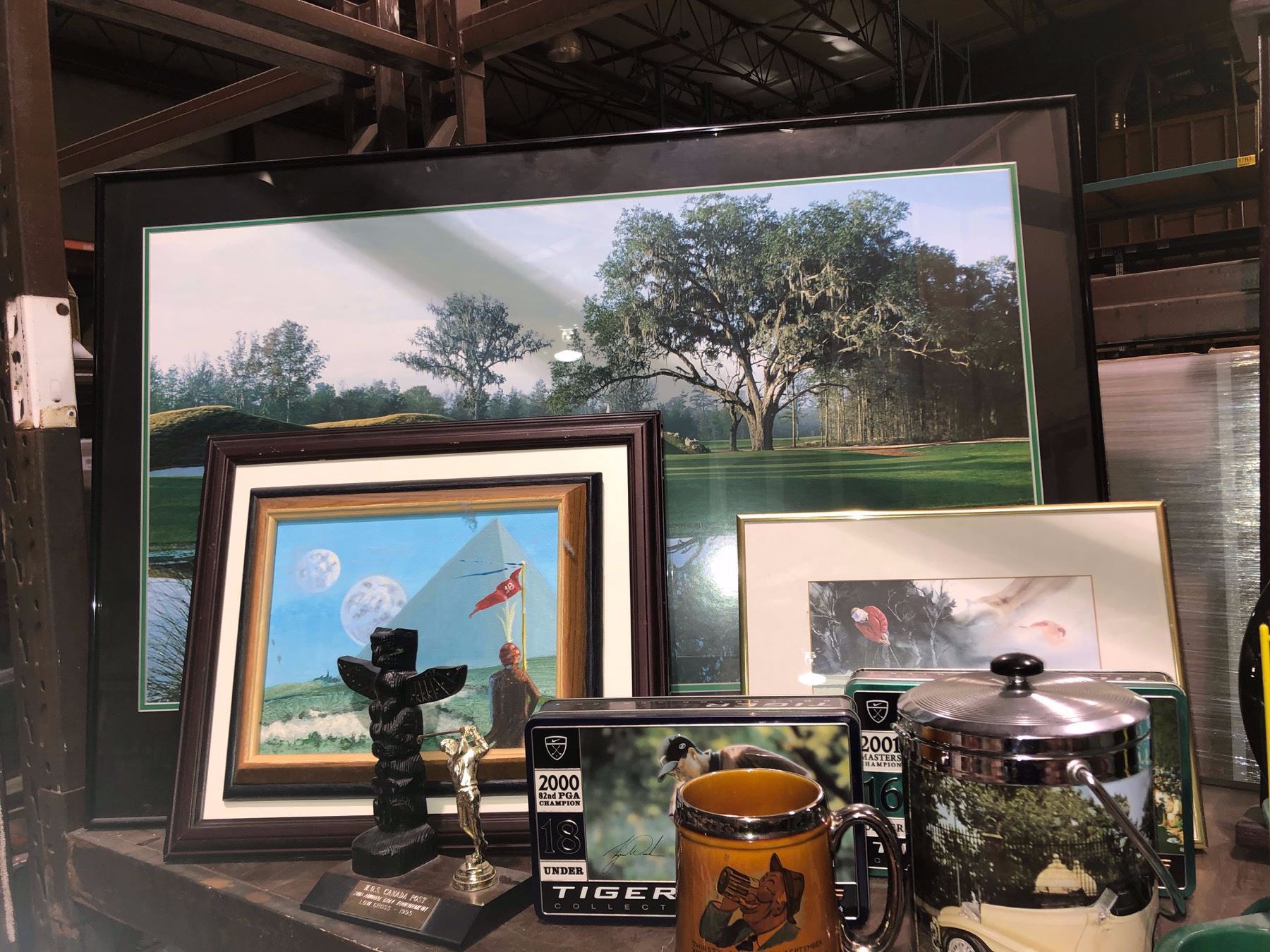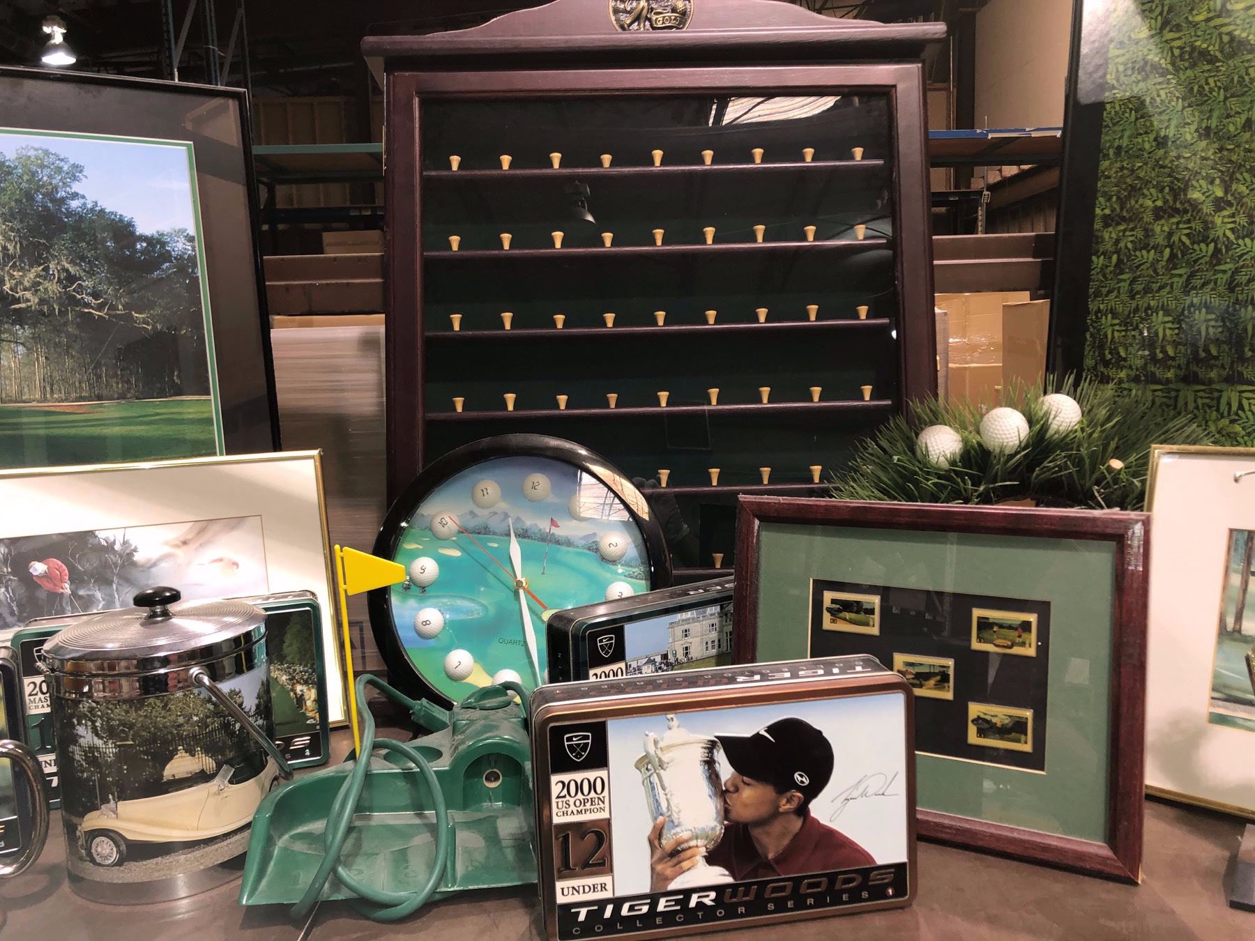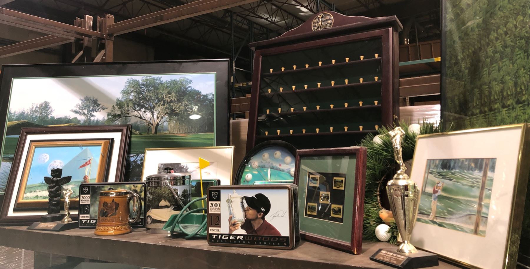 Shelf lot of golf collectable & decorative pieces