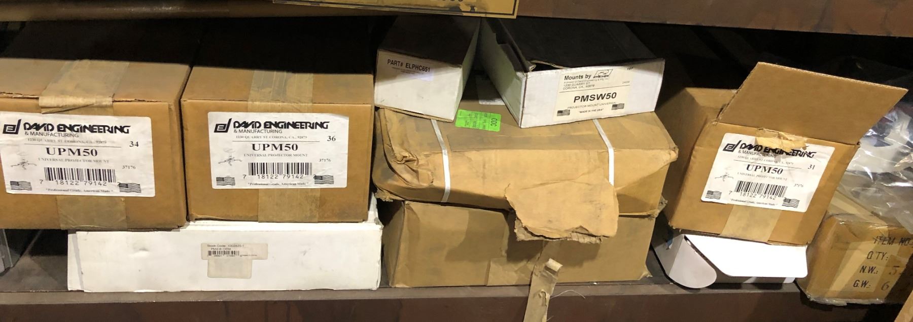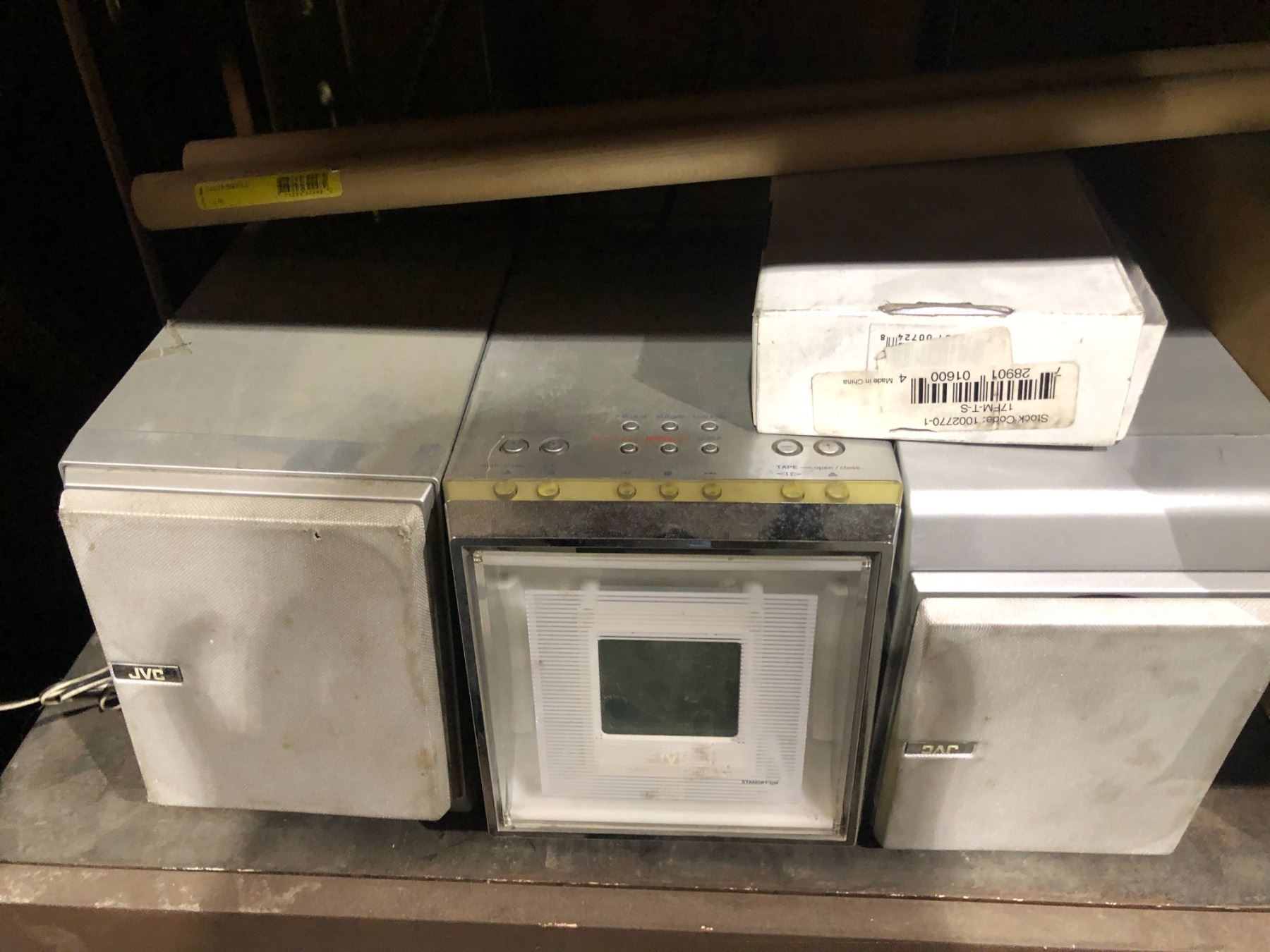Shelf lot of misc. items - JVC stereo/ universal projector mounts etc.