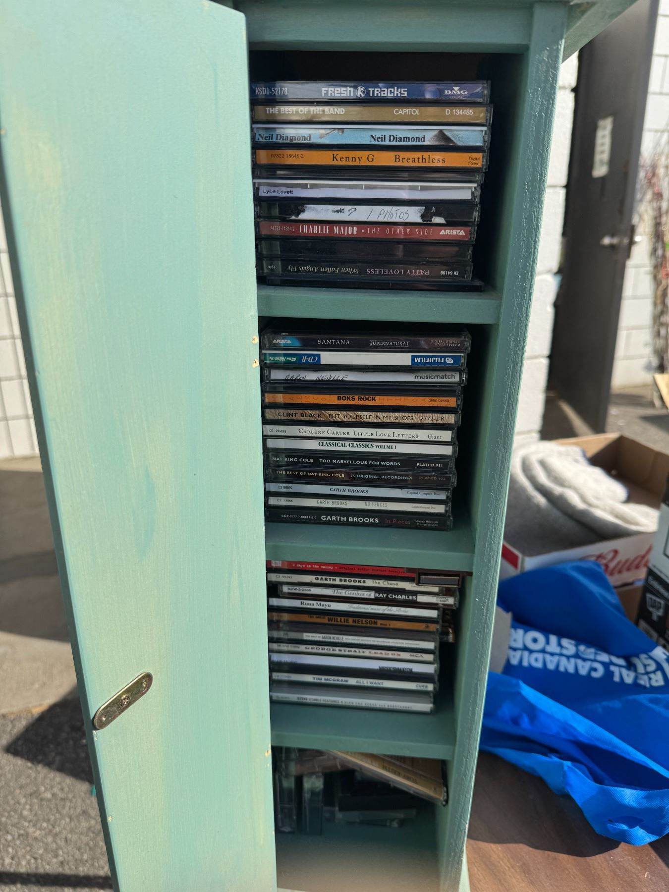 Shelf with cities, and cassettes