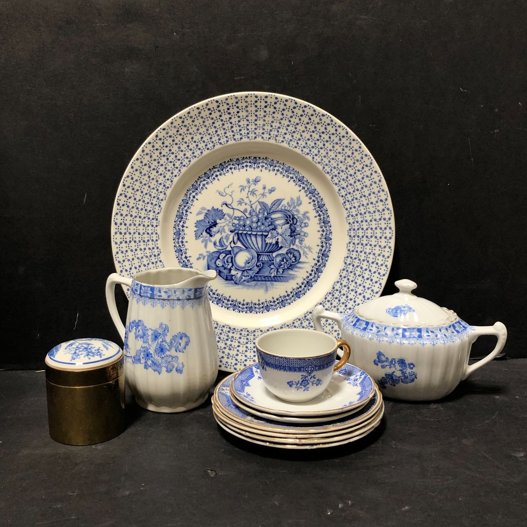 Shell England tea set - includes 6 saucers / plate / teapots / brass & porcelain lidded container etc
