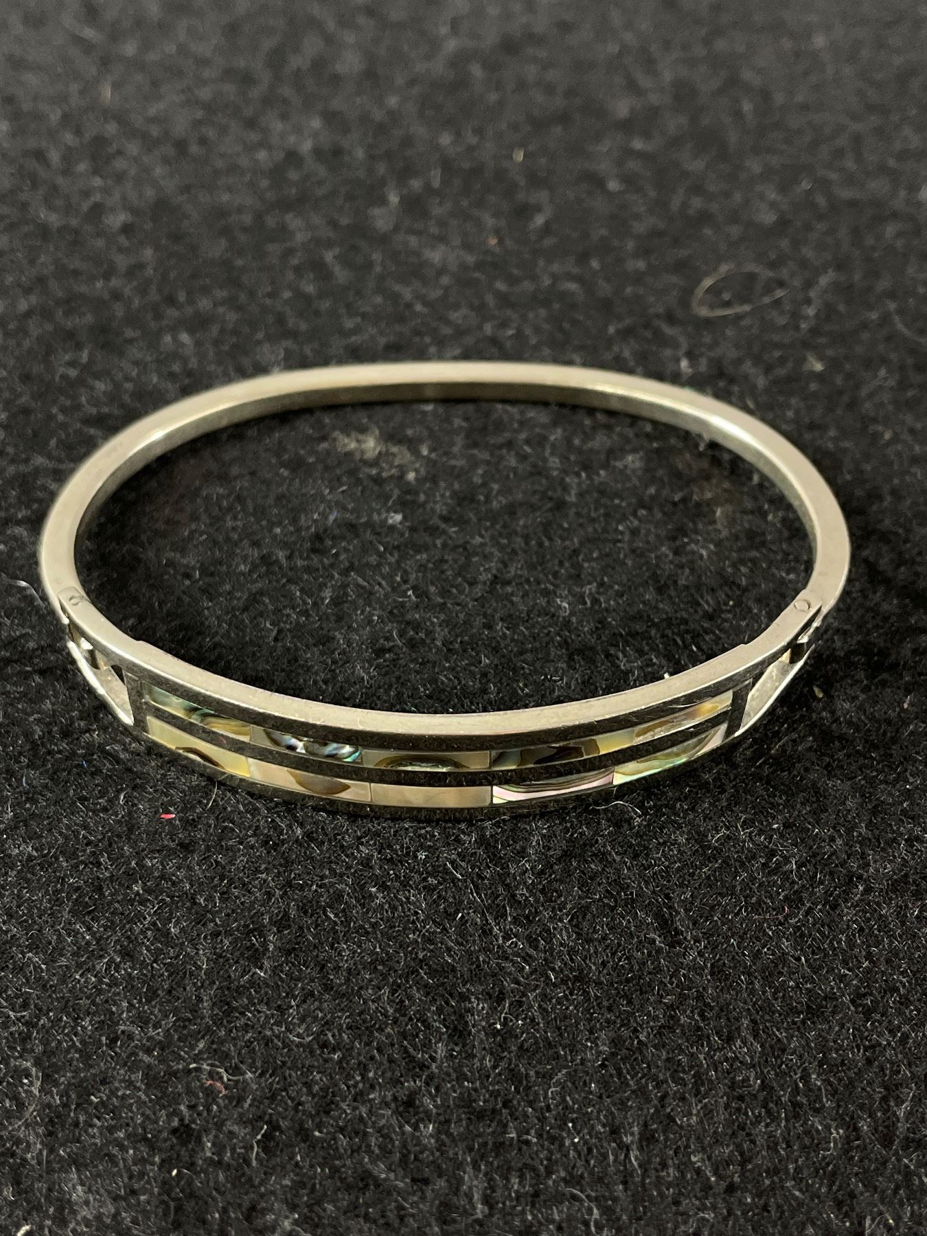 Shell Inlay Silver Bracelet