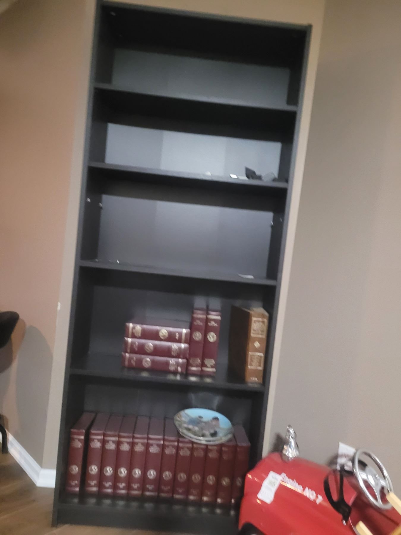 Composite bookcase with adjustable shelves, 80x32x11. Pick up 10-11
