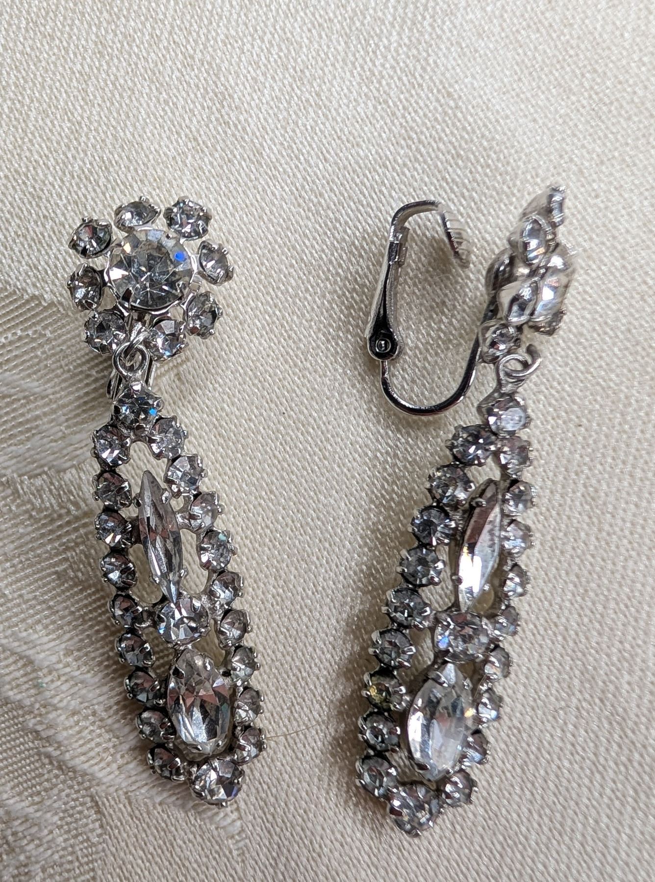 Vintage Sherman clip on drop crystal/rhinestone earrings
