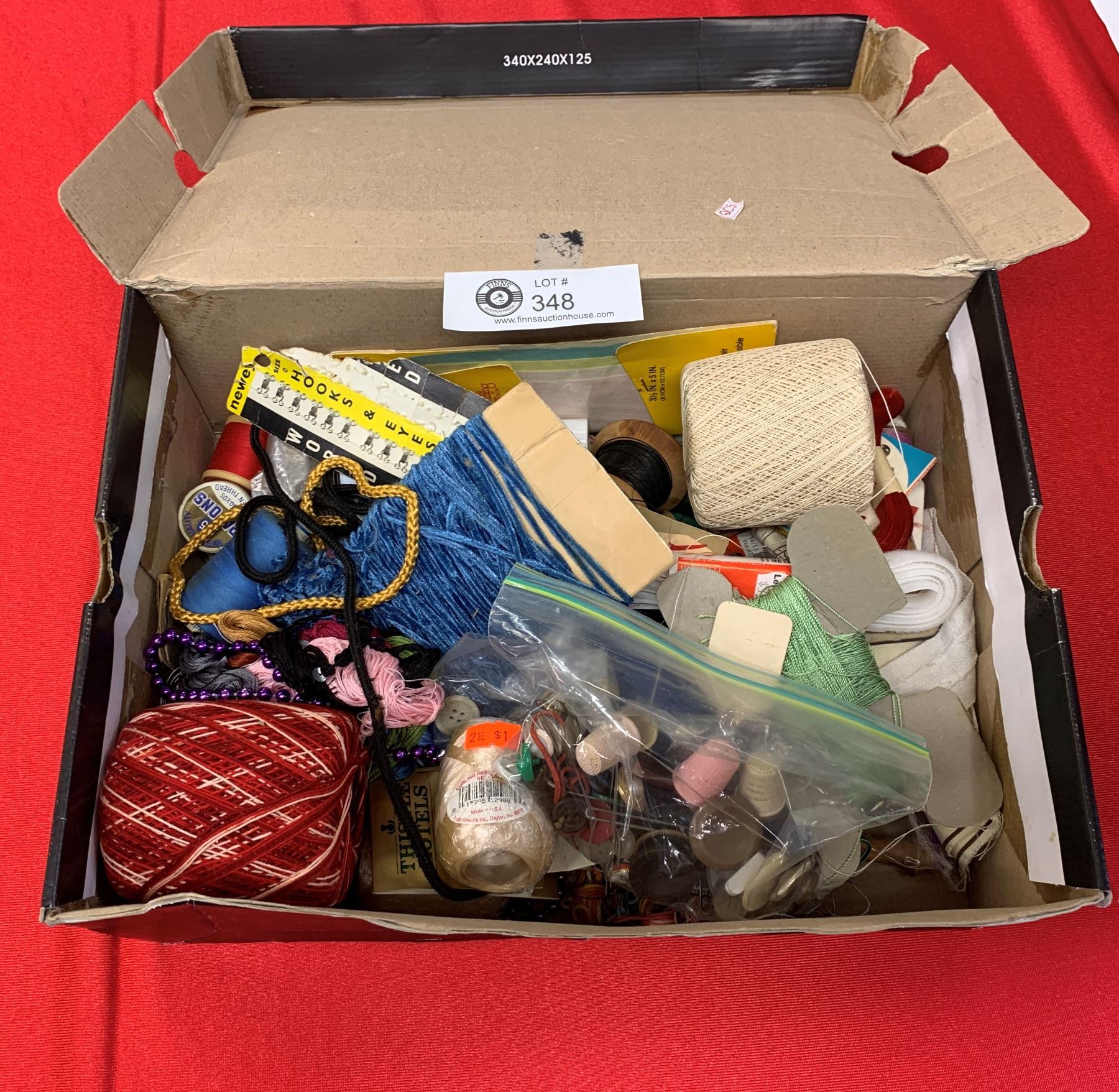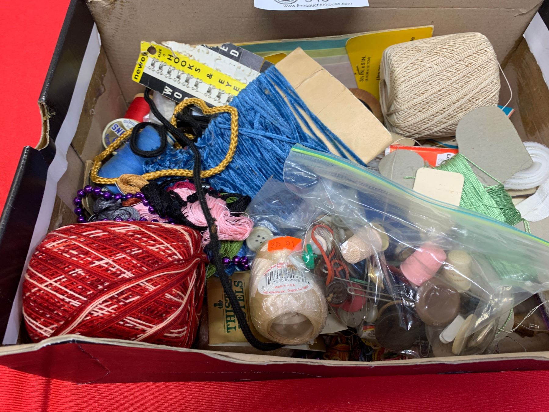 Shoebox full of sewing Buttons thread needles etc