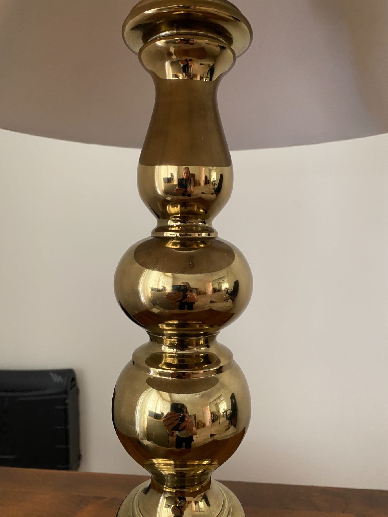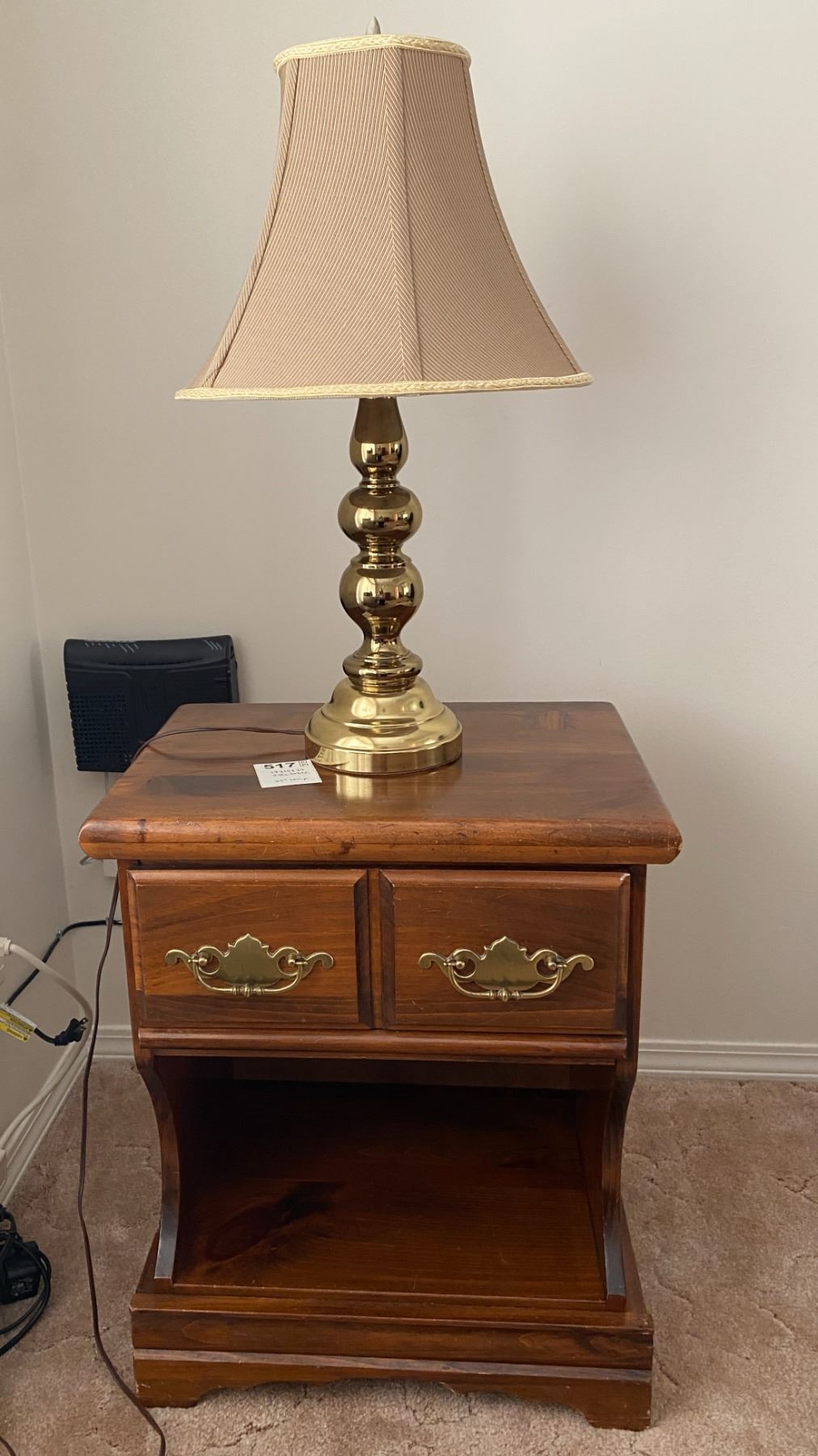 Side table and lamp - works. Table 19x14x24". Lamp is 25"H.
