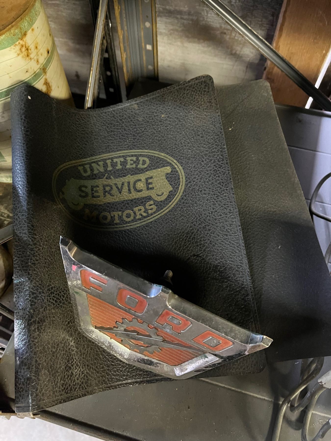 Sign of FORD BRAND Emblem and United Service motor cover for parts manuals